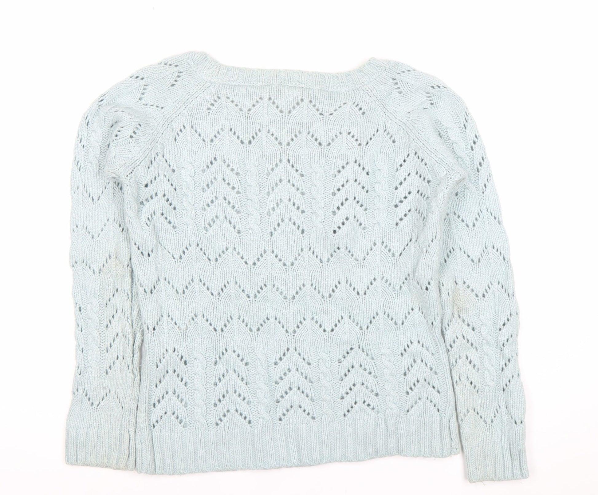 Fat Face Womens Blue Cable Knit Jumper Size 12 Crew Neck