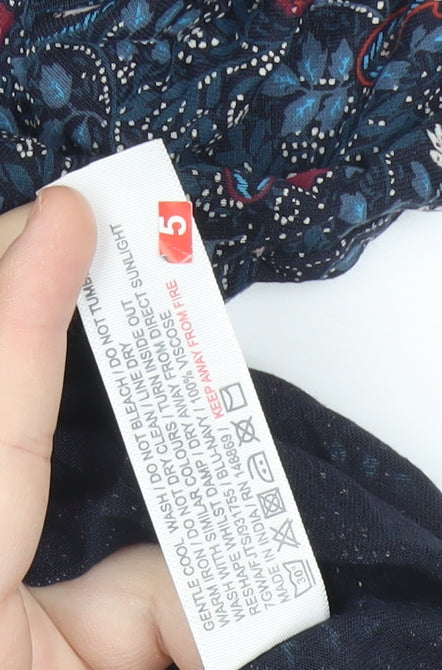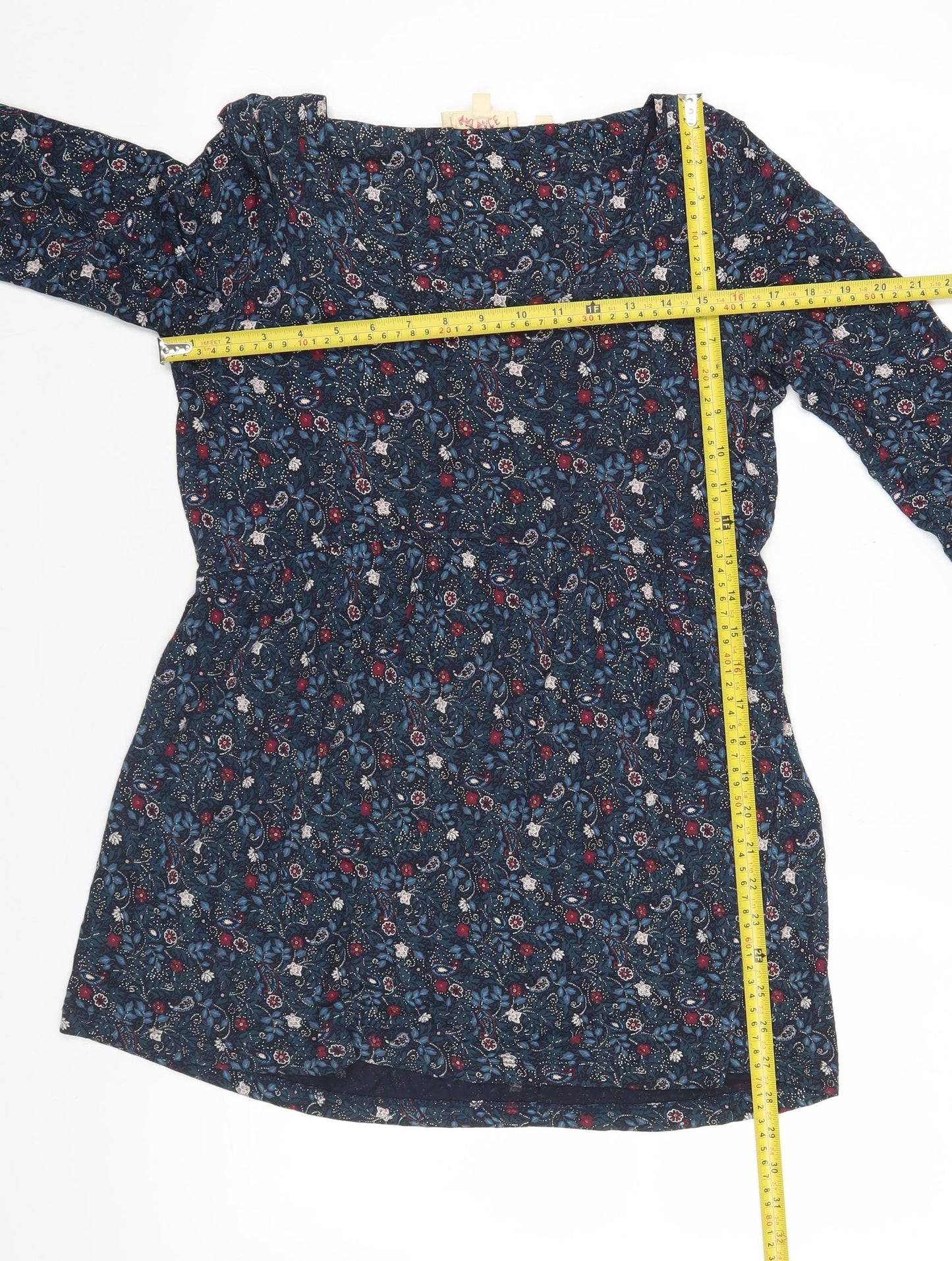 Fat Face Womens Blue Floral Shift Dress Size 10 Scoop Neck 3/4 Sleeve