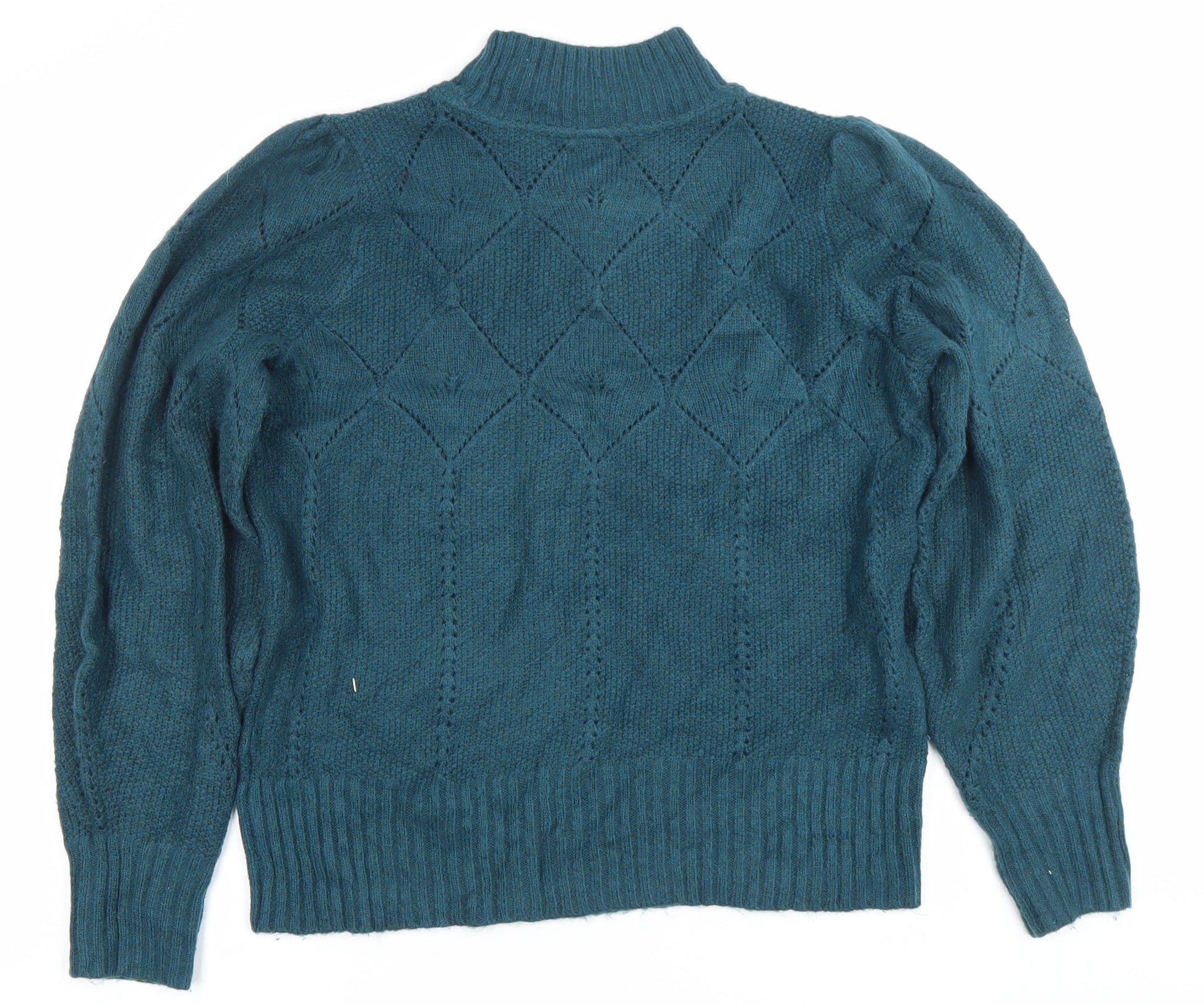 Fat Face Womens Blue Mock Neck Long Sleeve Pullover Jumper Size 12