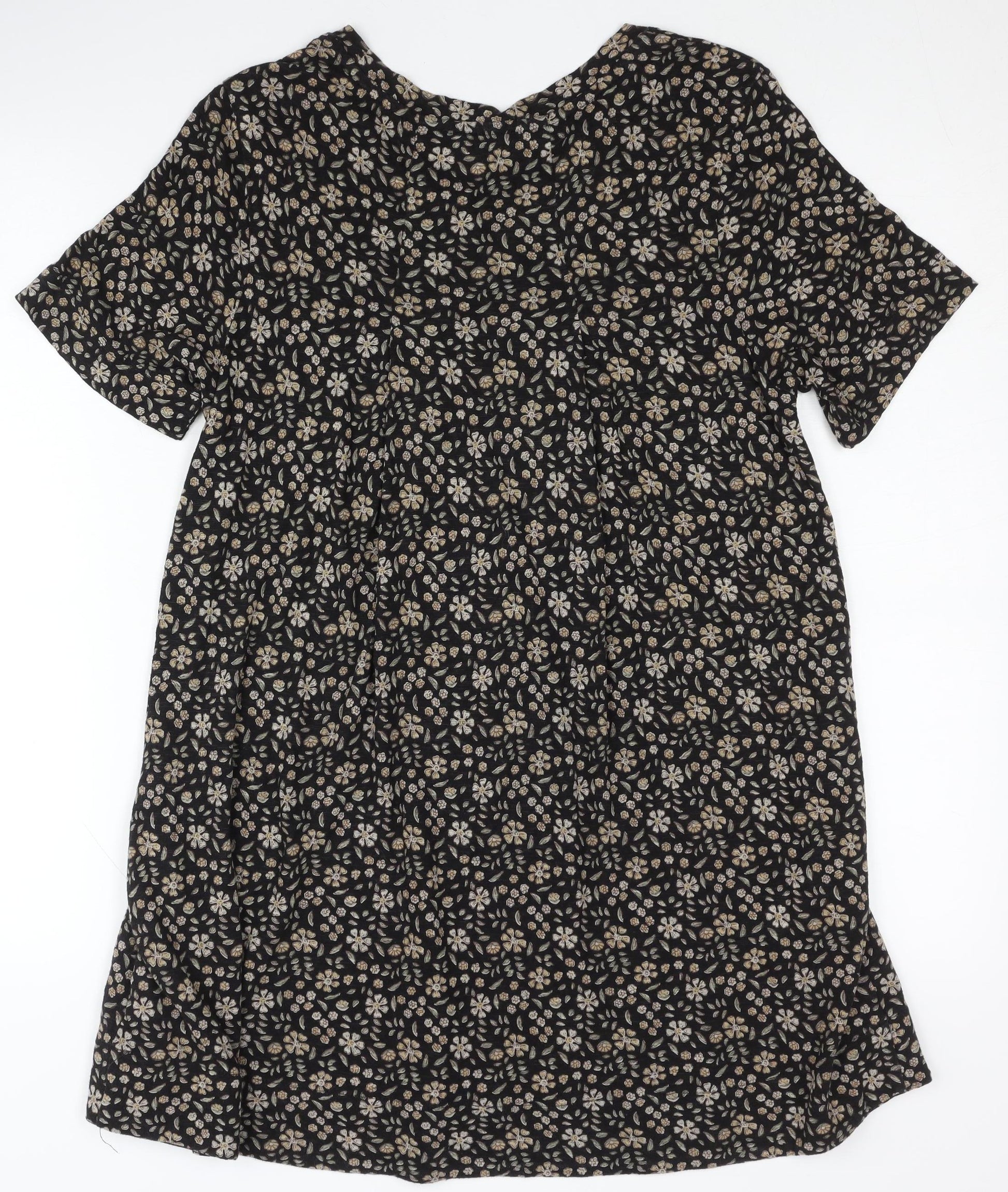 Fat Face Women's Floral T-Shirt Dress Black Size 10