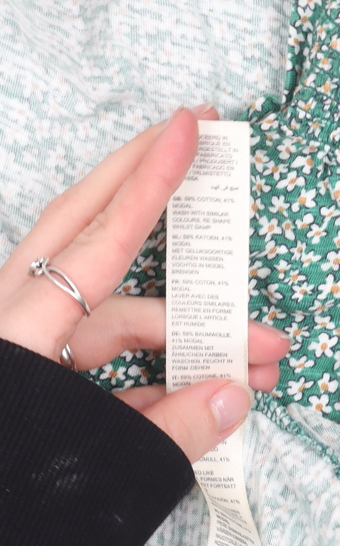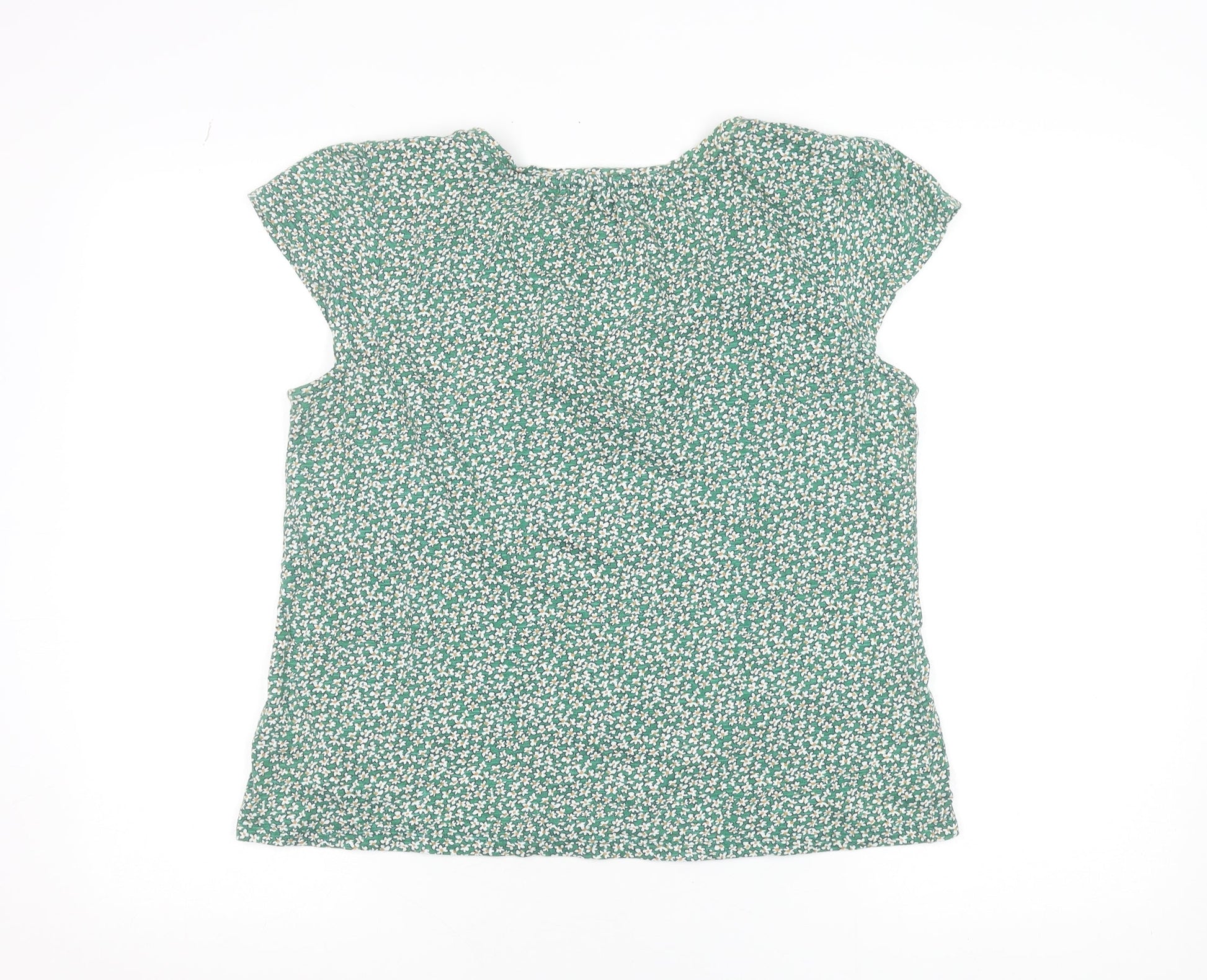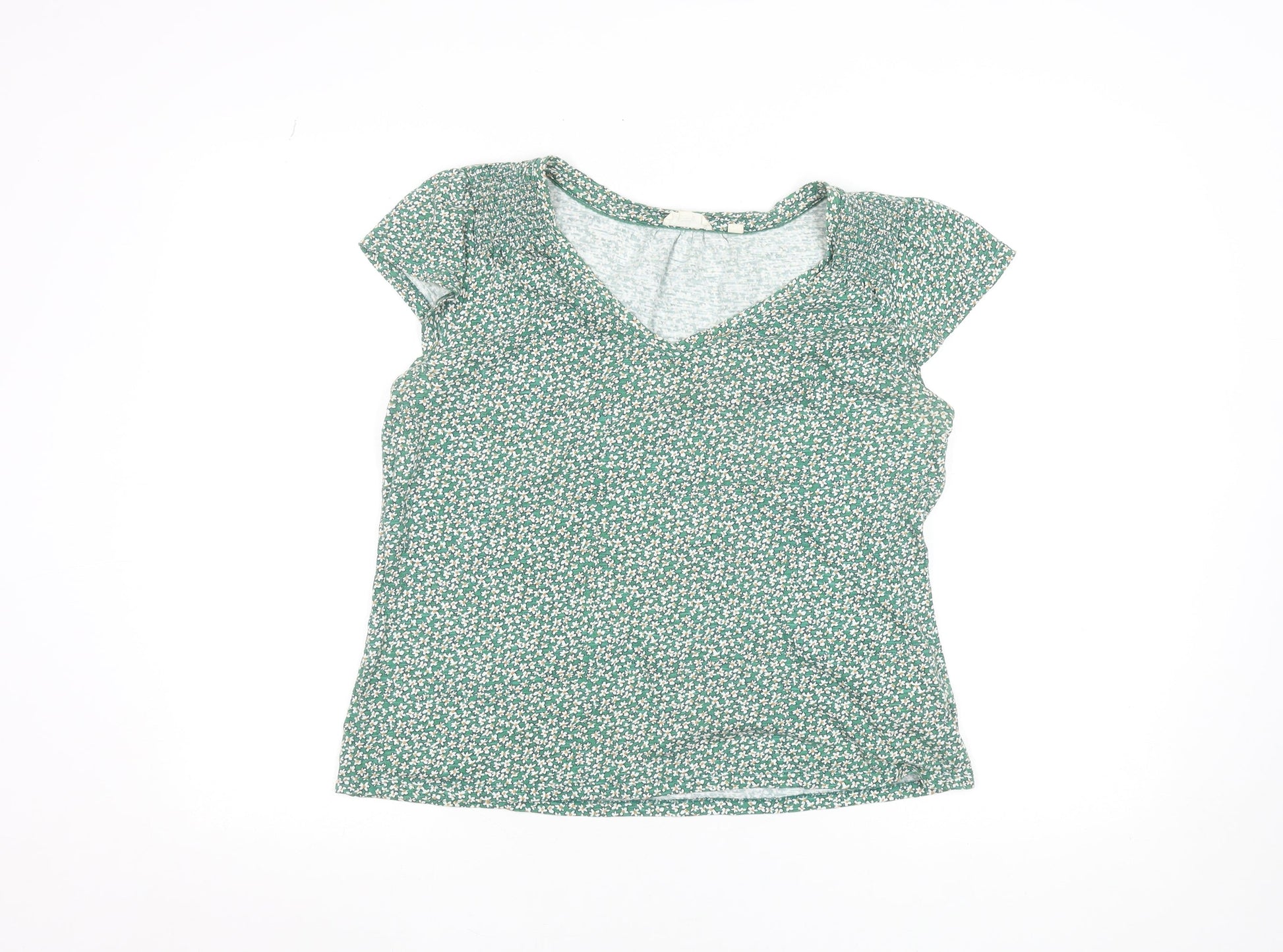 Fat Face Womens Green Floral V-Neck Cotton Modal T-Shirt Size 12