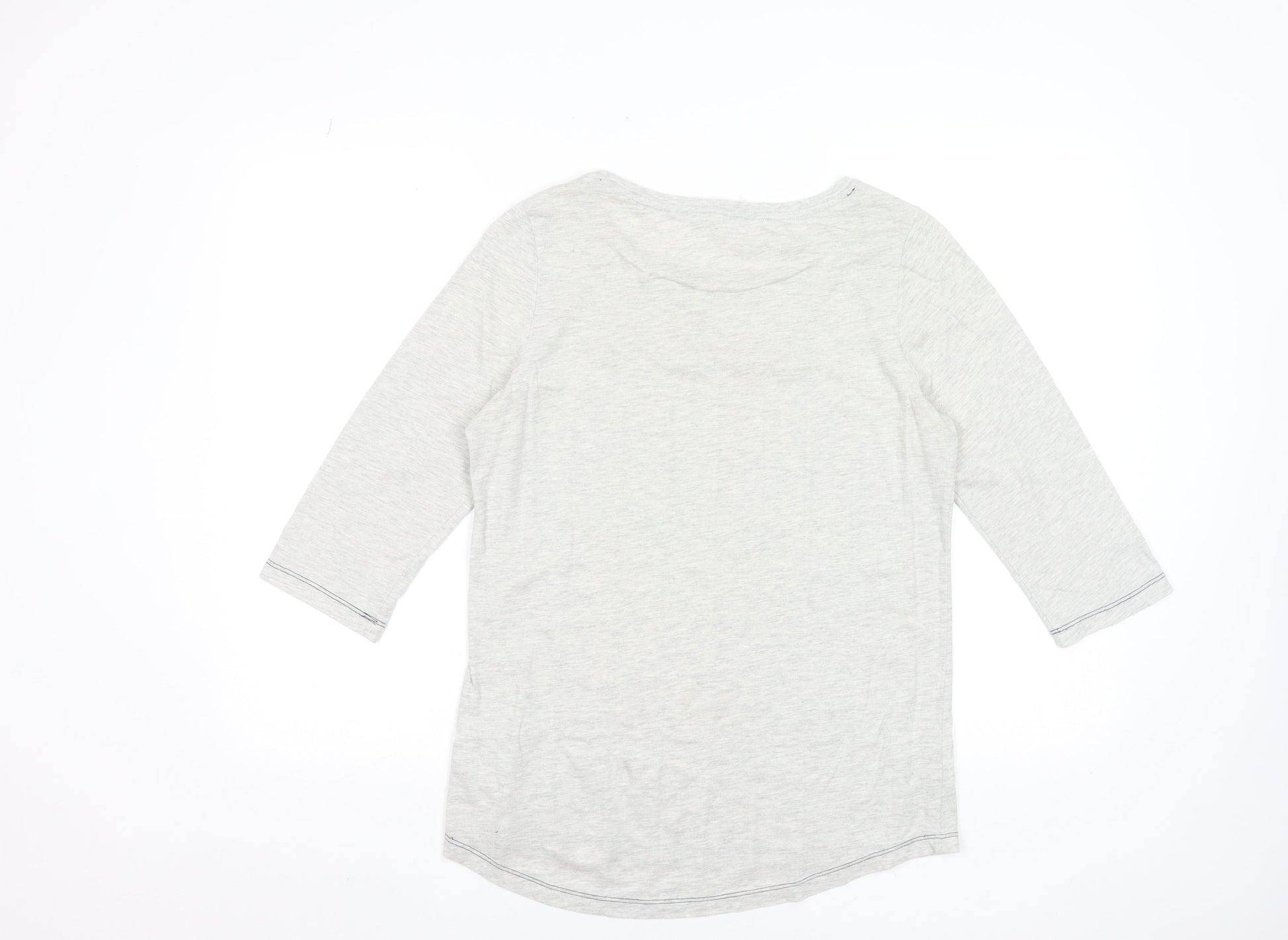 Fat Face Women's Grey 3/4 Sleeve Crew Neck Cotton T-Shirt UK 12