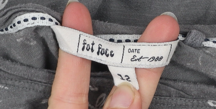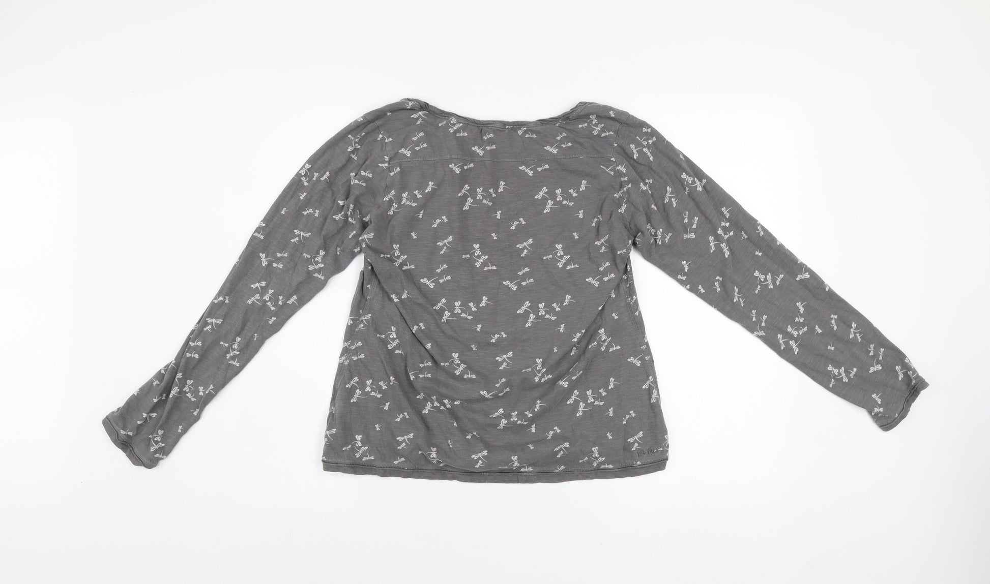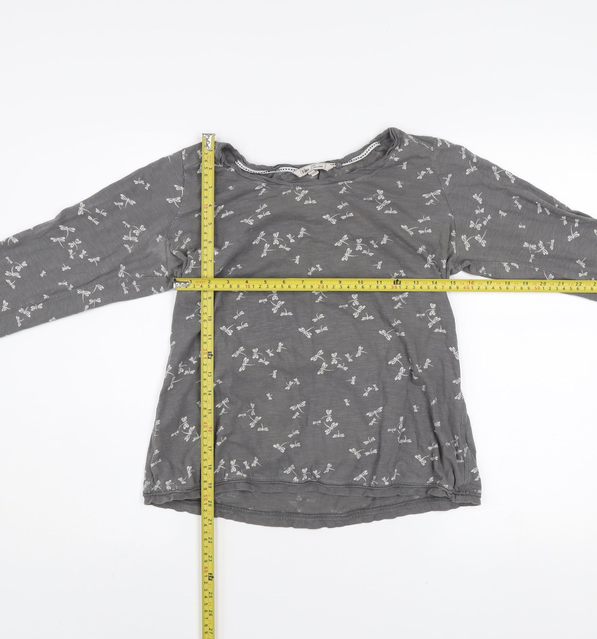Fat Face Womens Grey Floral Long Sleeve Cotton Top Size 12