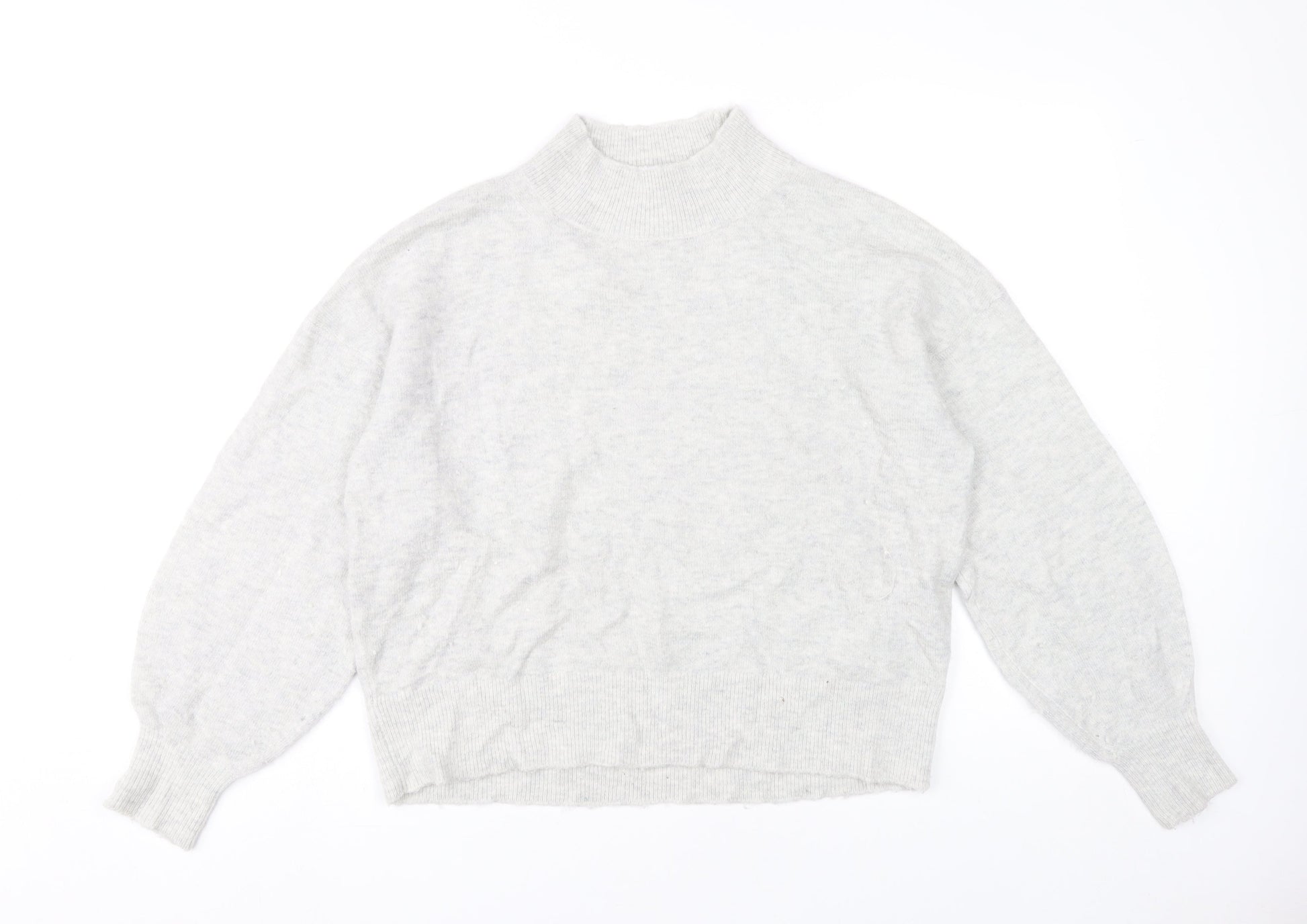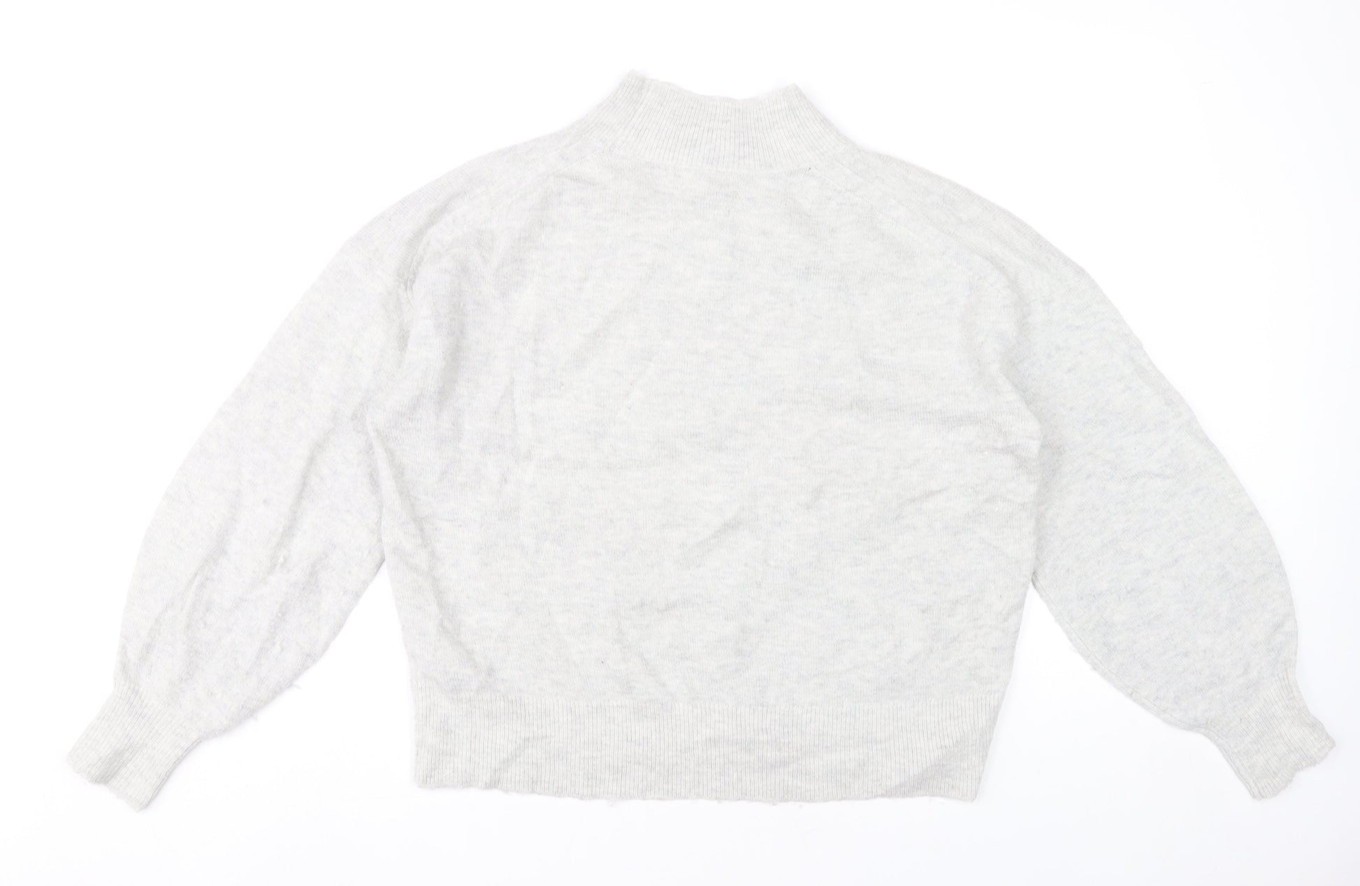 Fat Face Womens Grey Mock Neck Jumper Size 12 Wool Blend Pullover