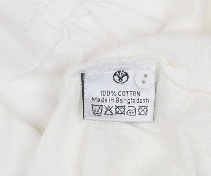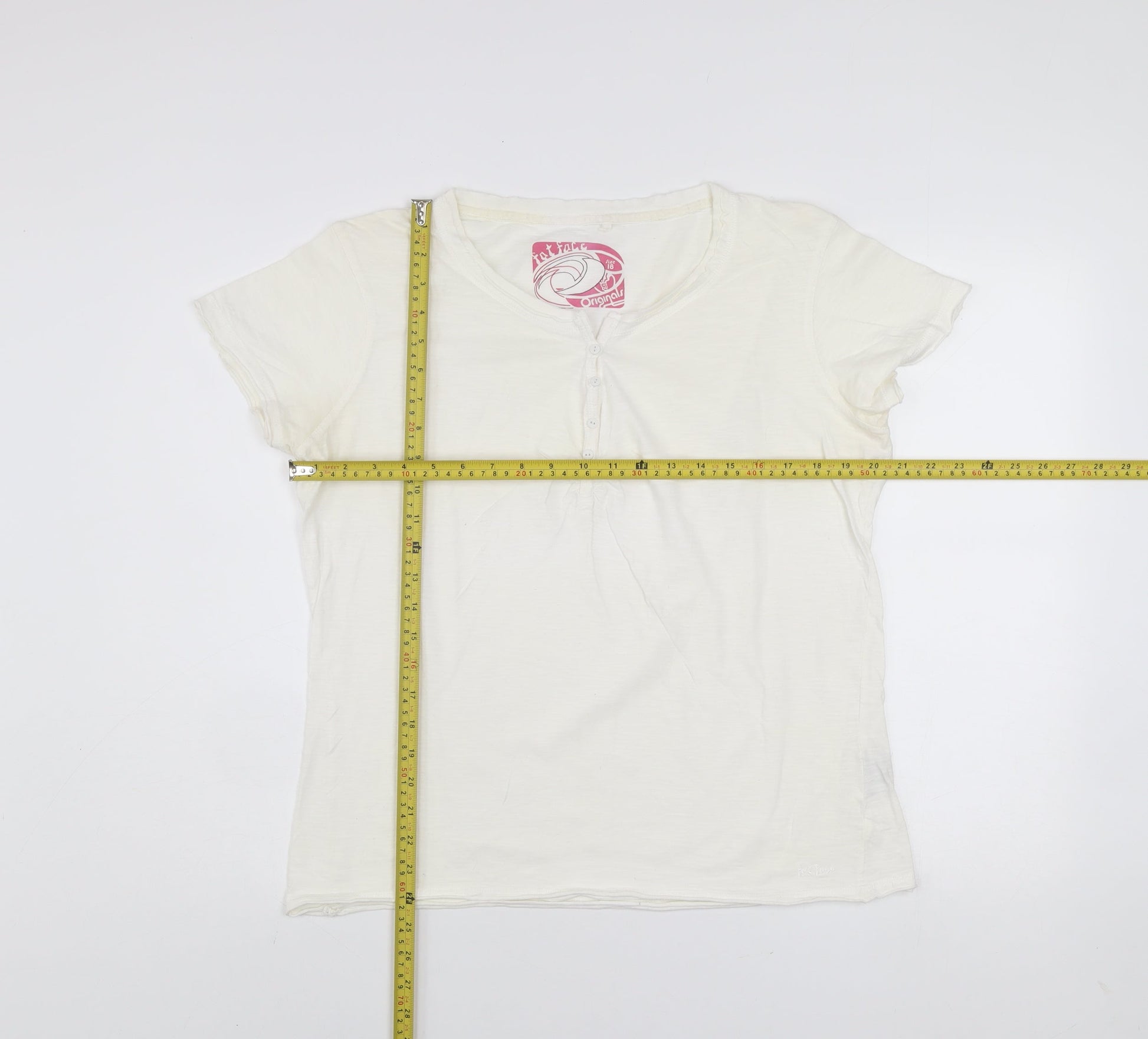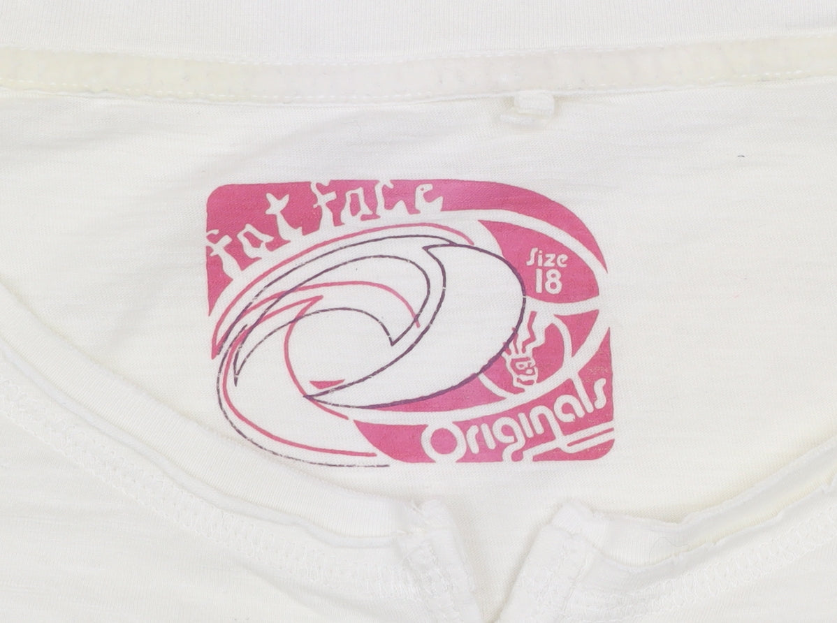 Fat Face Women's Ivory Size 18 Cotton Short Sleeve Button T-Shirt