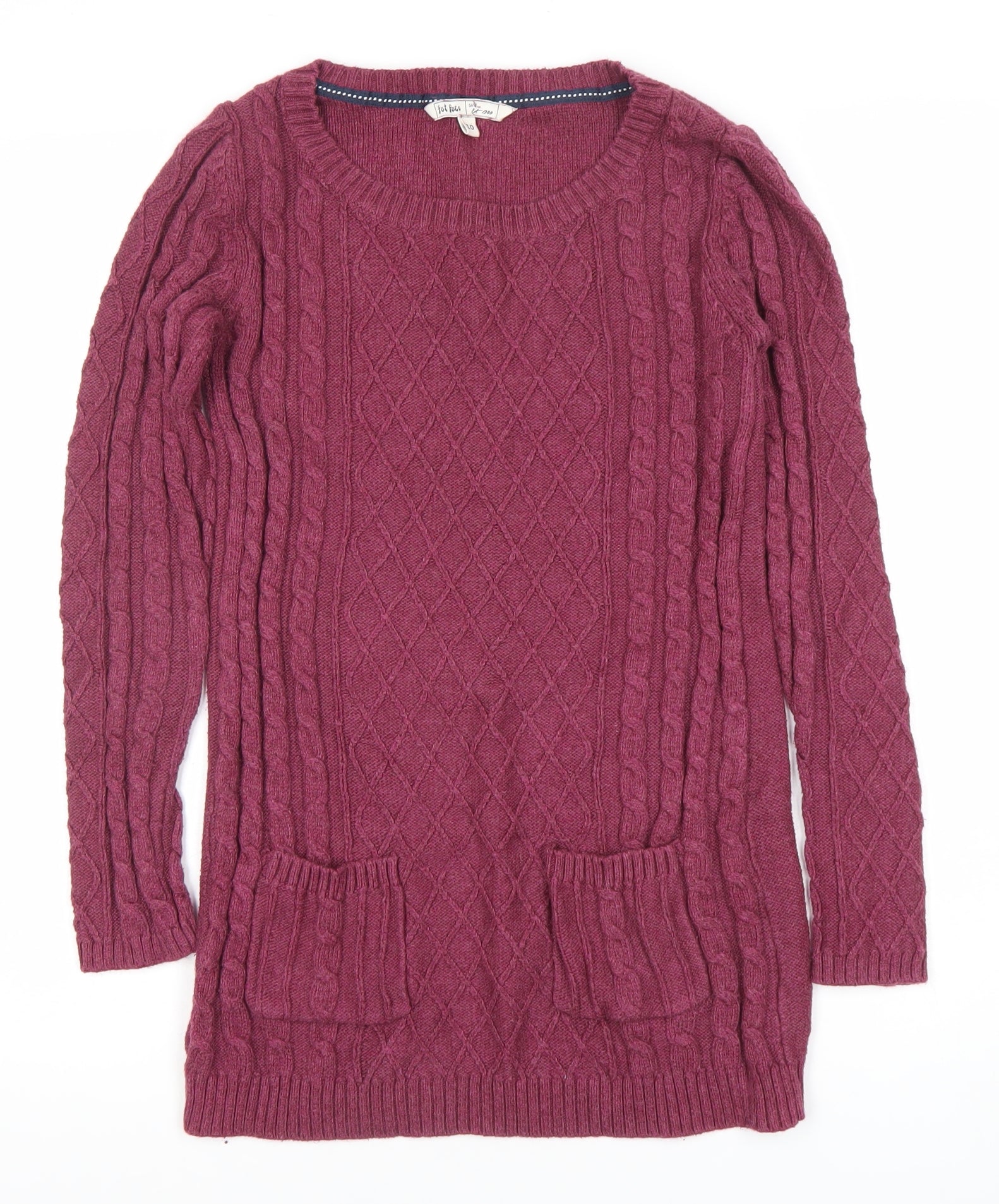Fat Face Women's Purple Cable-Knit Tunic Jumper Size 10 Wool Blend