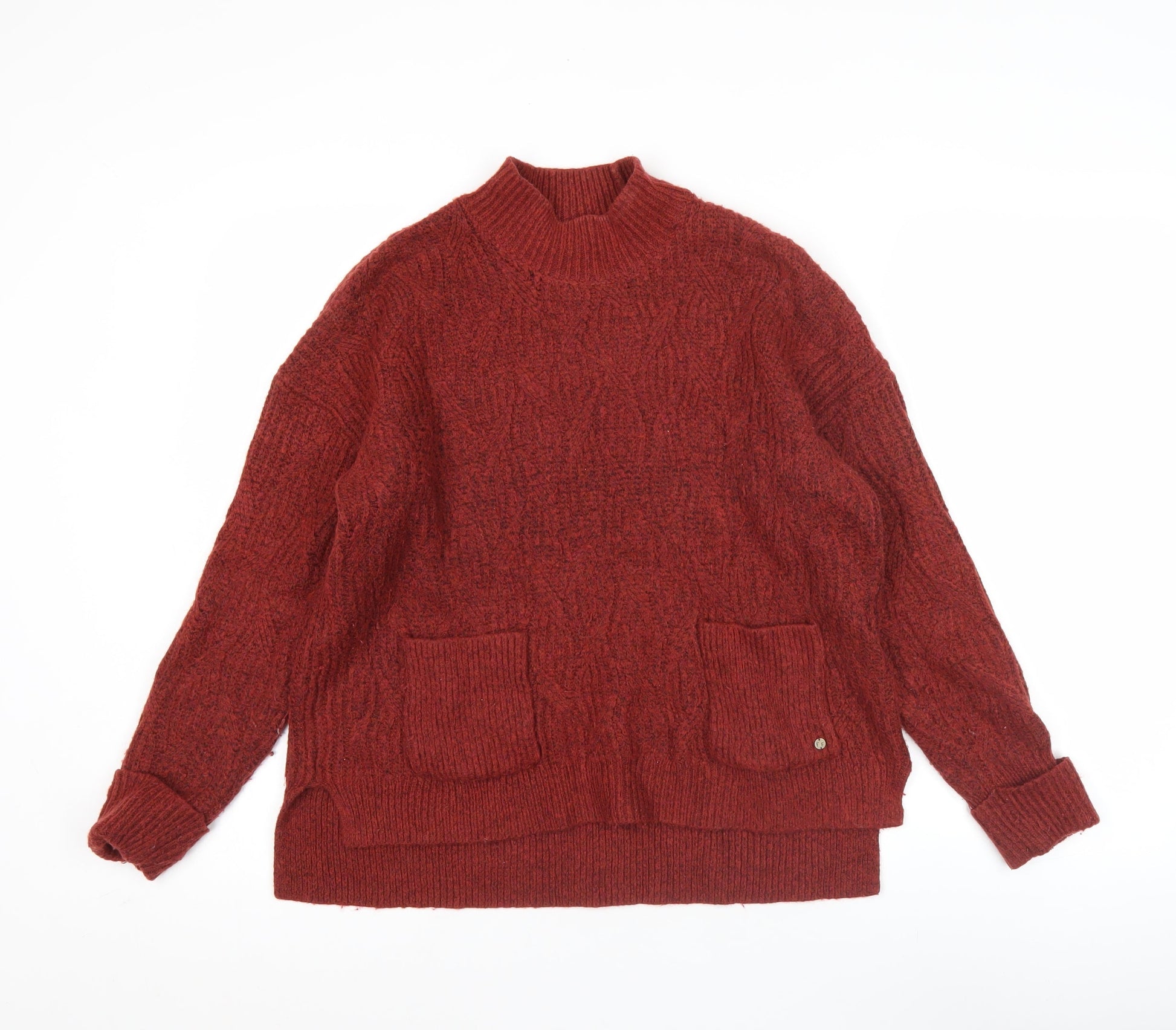 Fat Face Women's Red Cable Knit Mock Neck Jumper Size 10