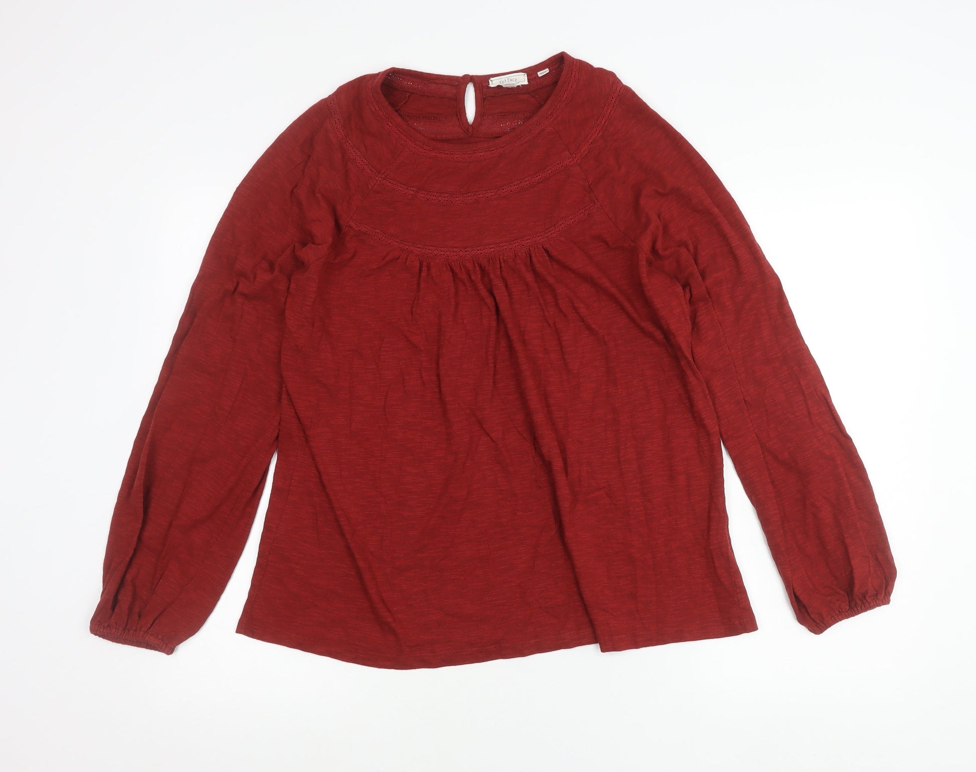 Fat Face Womens Red Cotton Modal Blouse UK 12 Long Sleeve Tunic Top