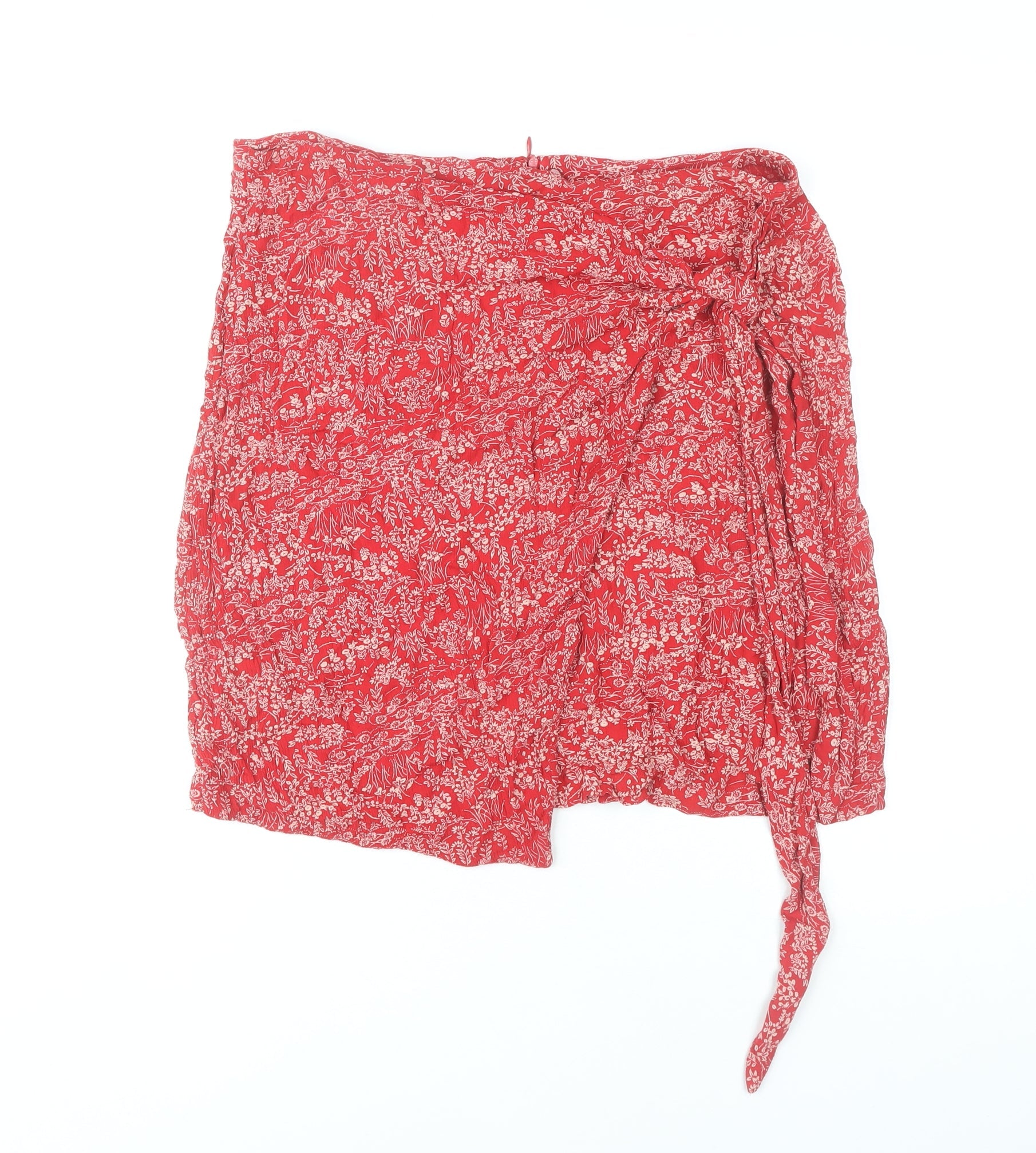 Fat Face Womens Red Floral Wrap Skirt Size 10 Viscose Summer Short
