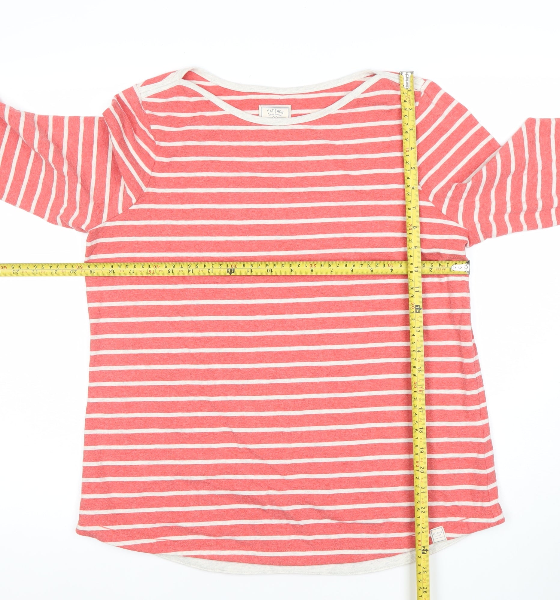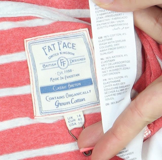 Fat Face Women's Red White Striped Long Sleeve Cotton T-Shirt Size 14