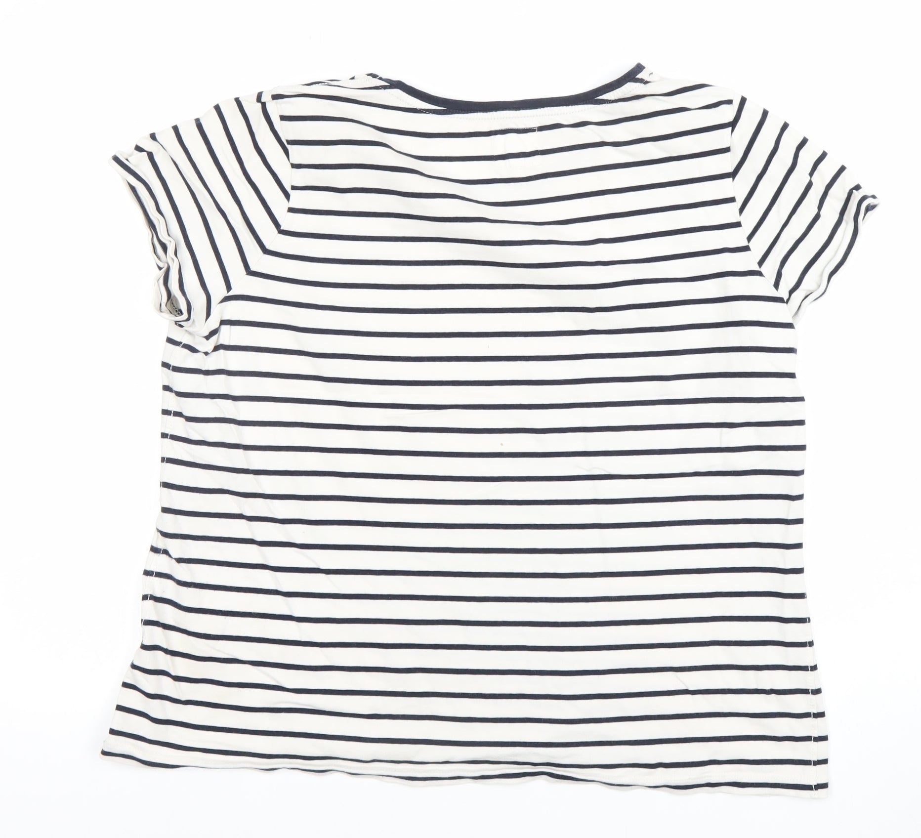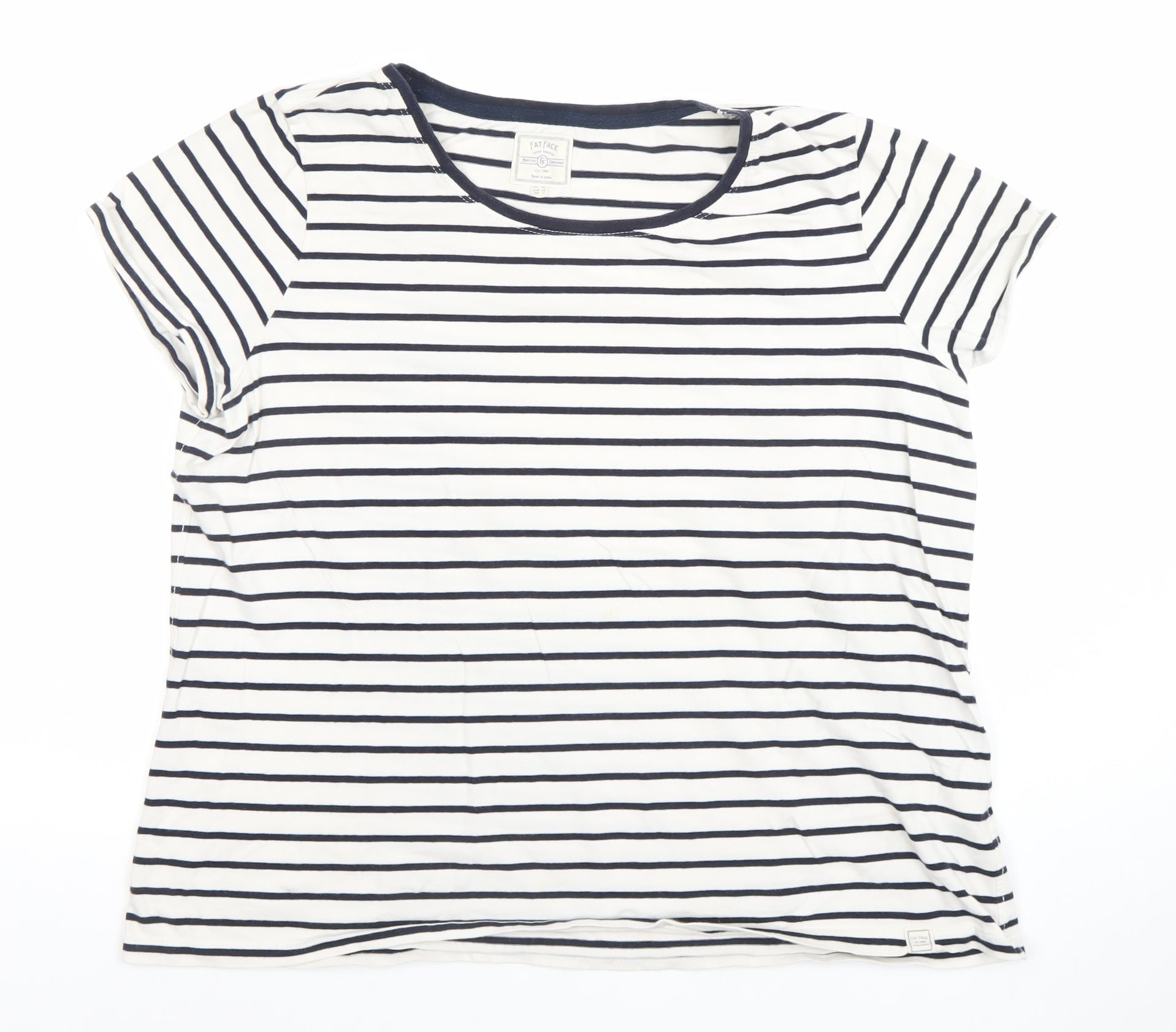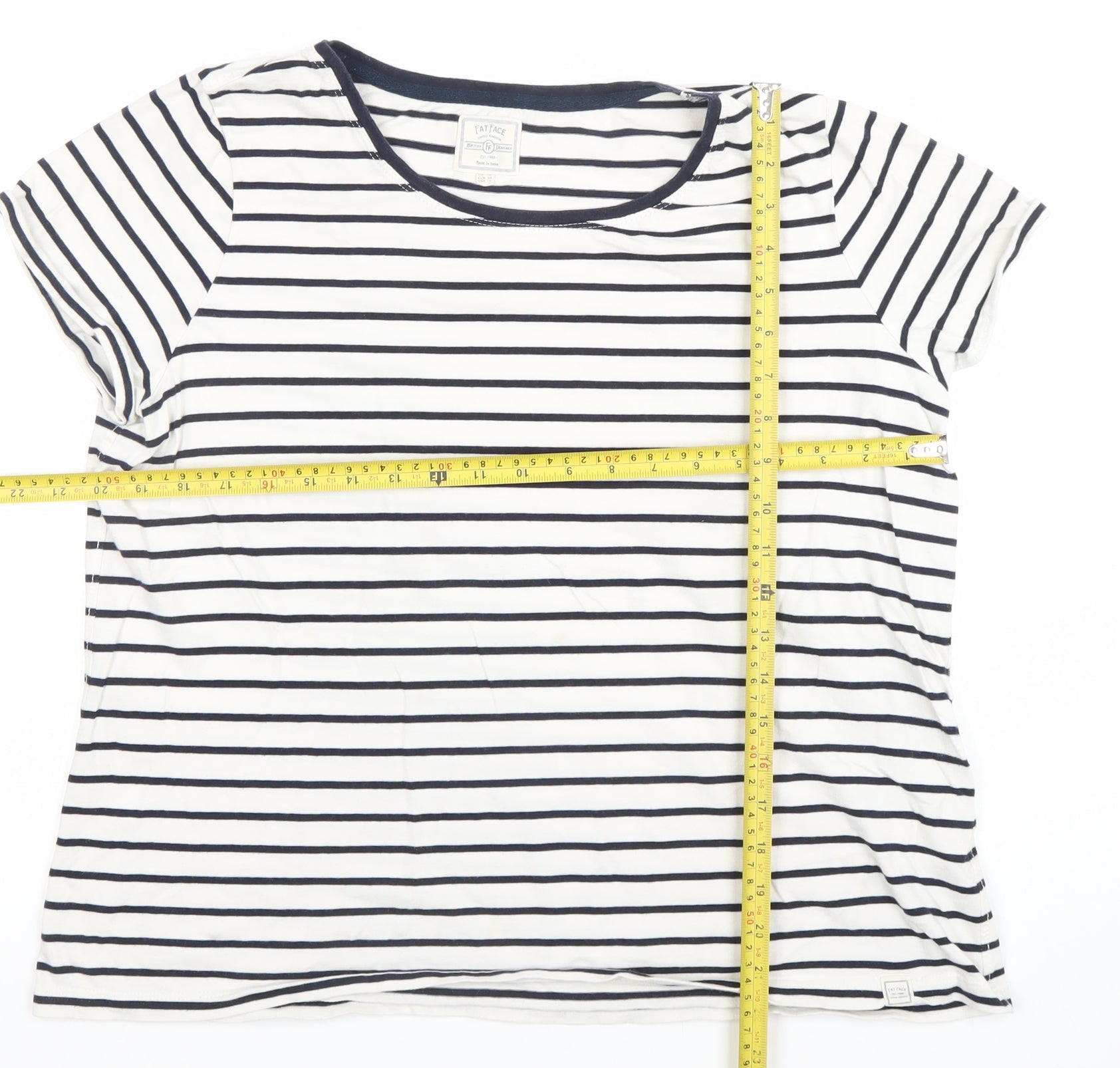 Fat Face Women's White Navy Striped Cotton T-Shirt Size 16