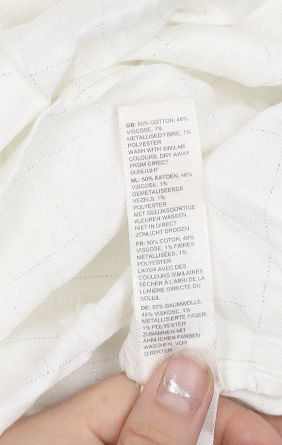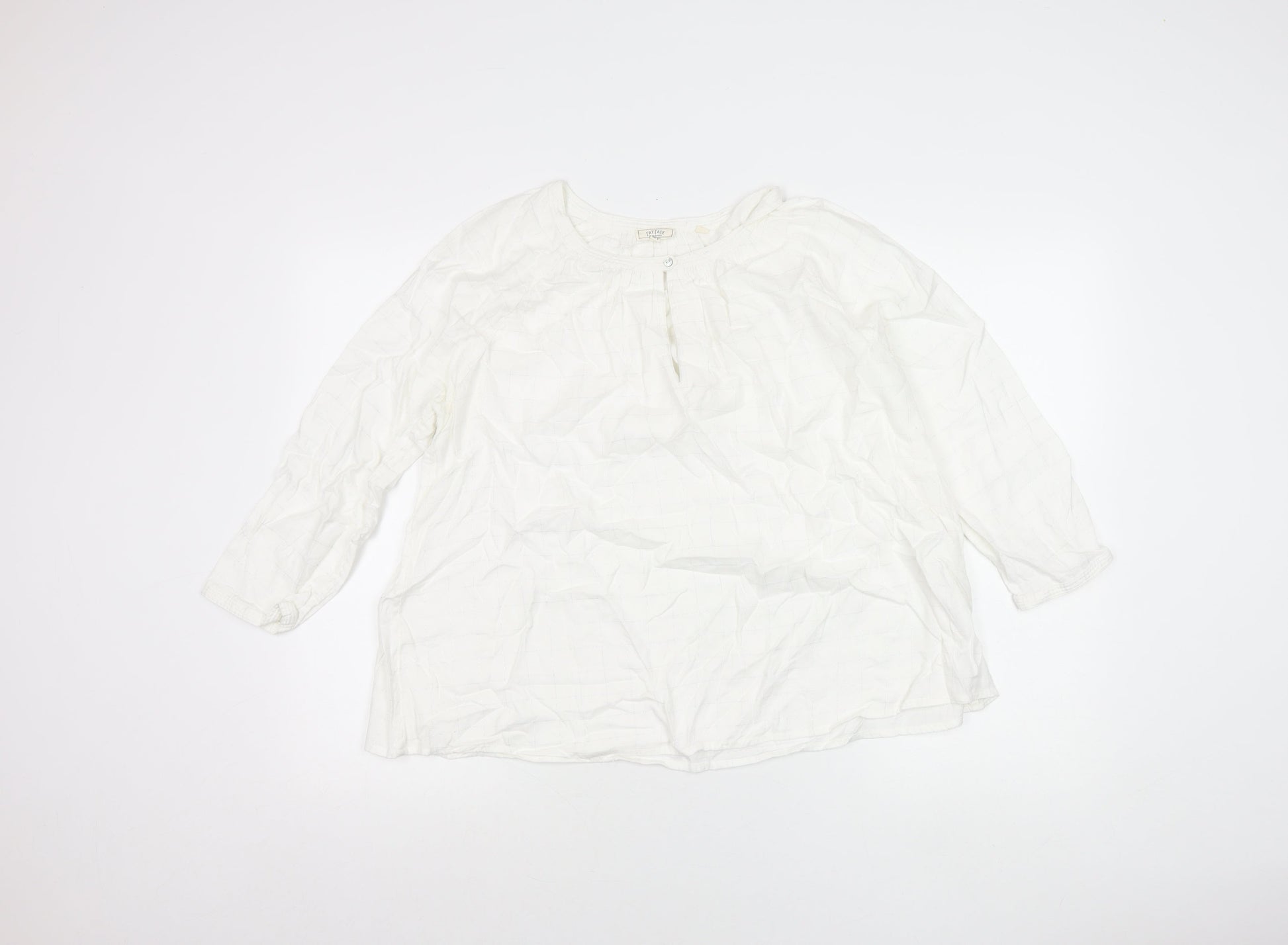 Fat Face Womens White Tunic Blouse UK 12 Long Sleeve Cotton Viscose