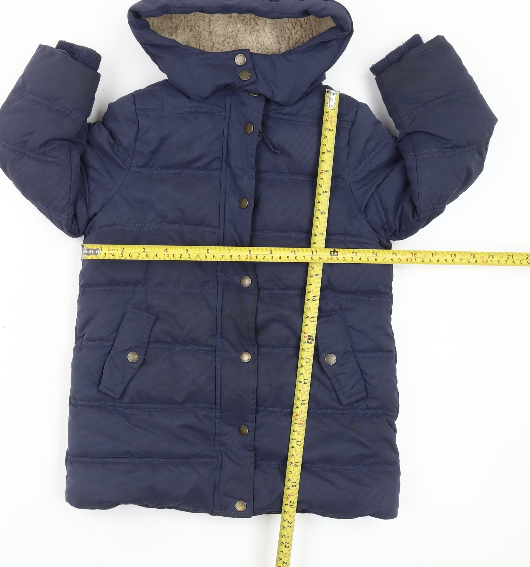 FatFace Girls Blue 4-5 Years Puffer Jacket Hooded Mid-Length Coat