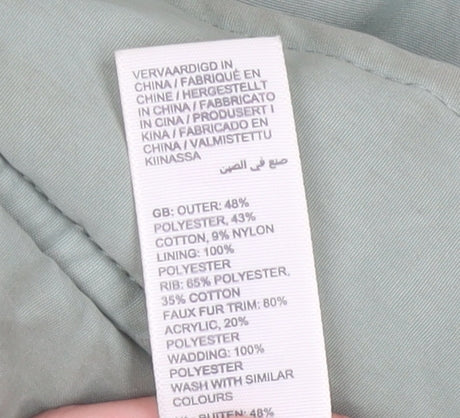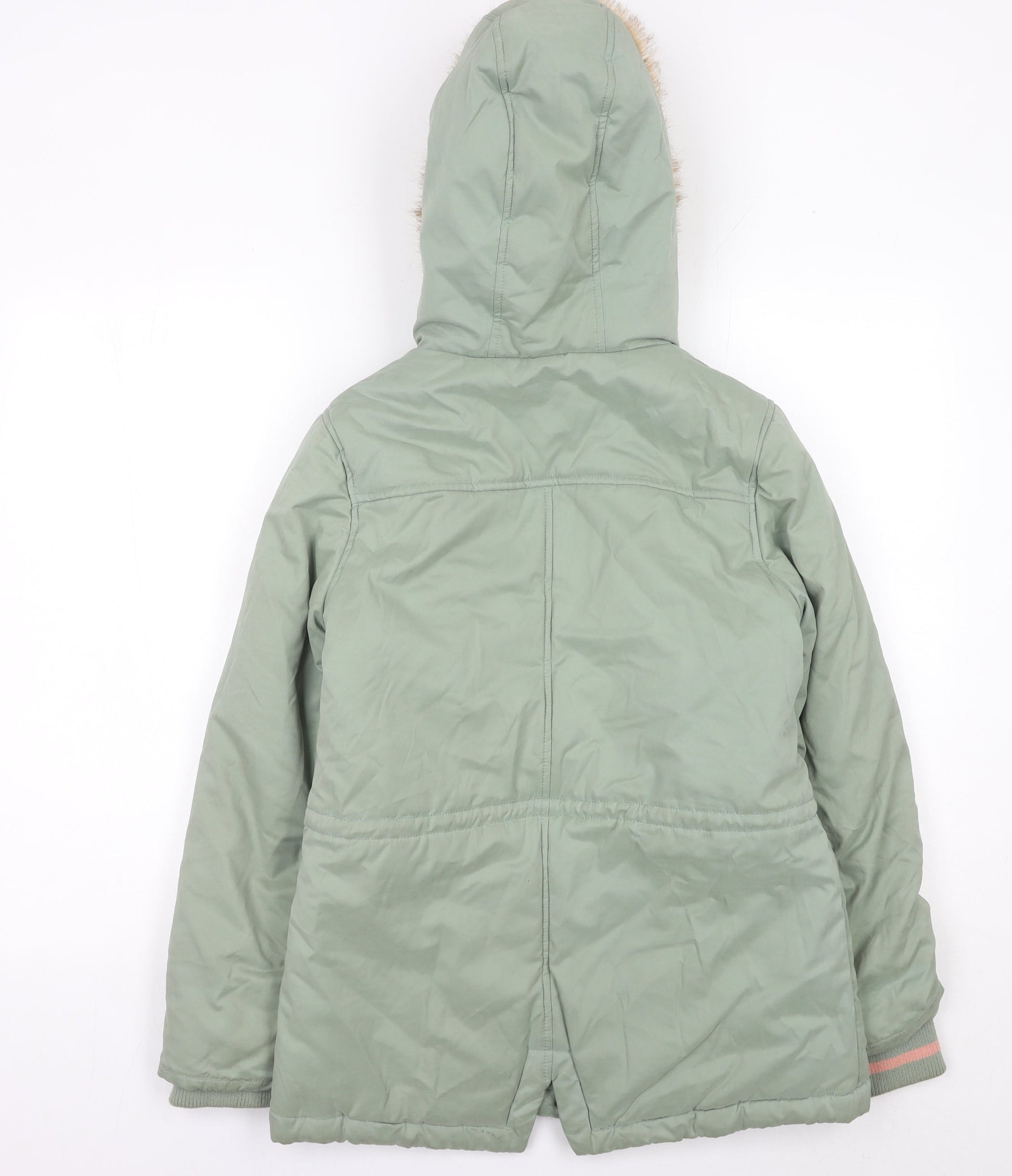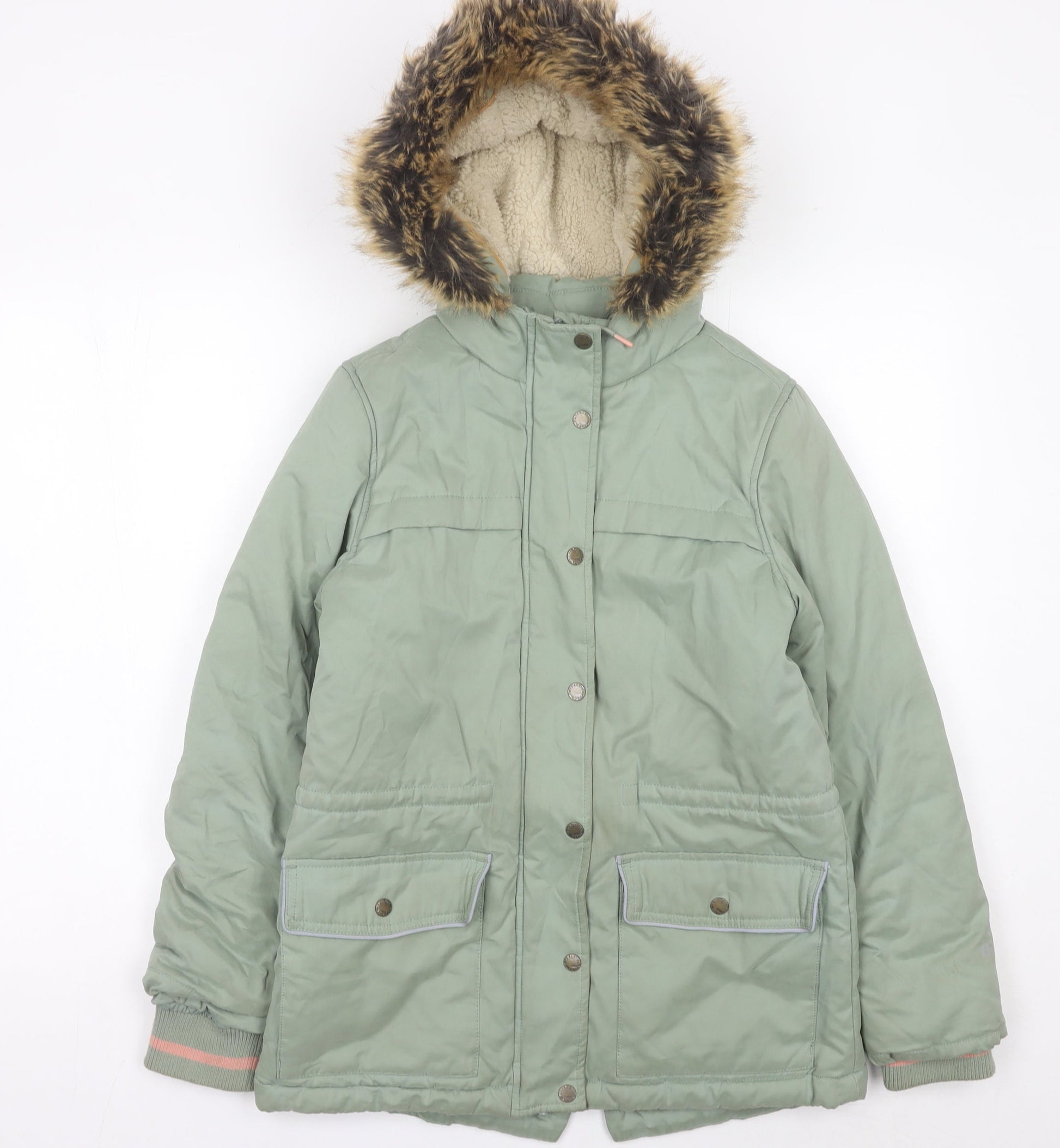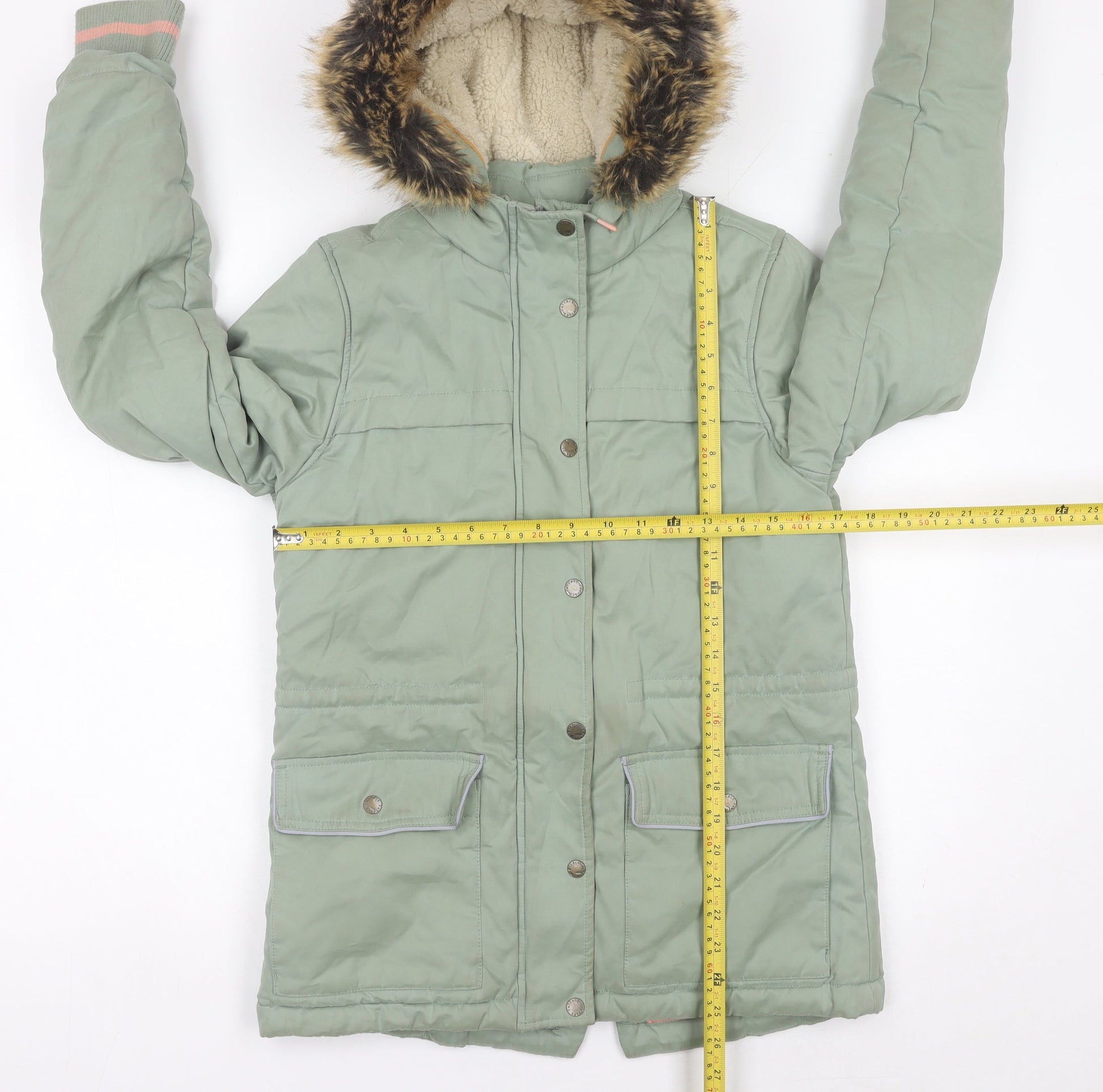FatFace Girls Green Faux Fur Hooded Parka Coat Jacket Age 13 Years