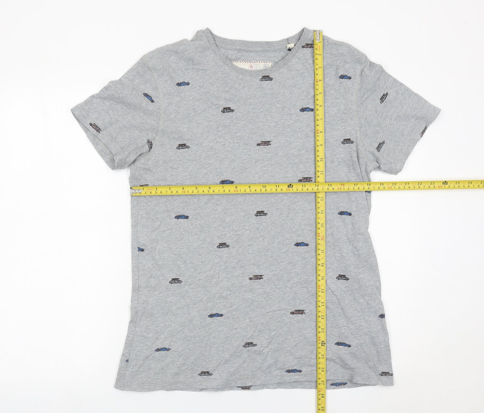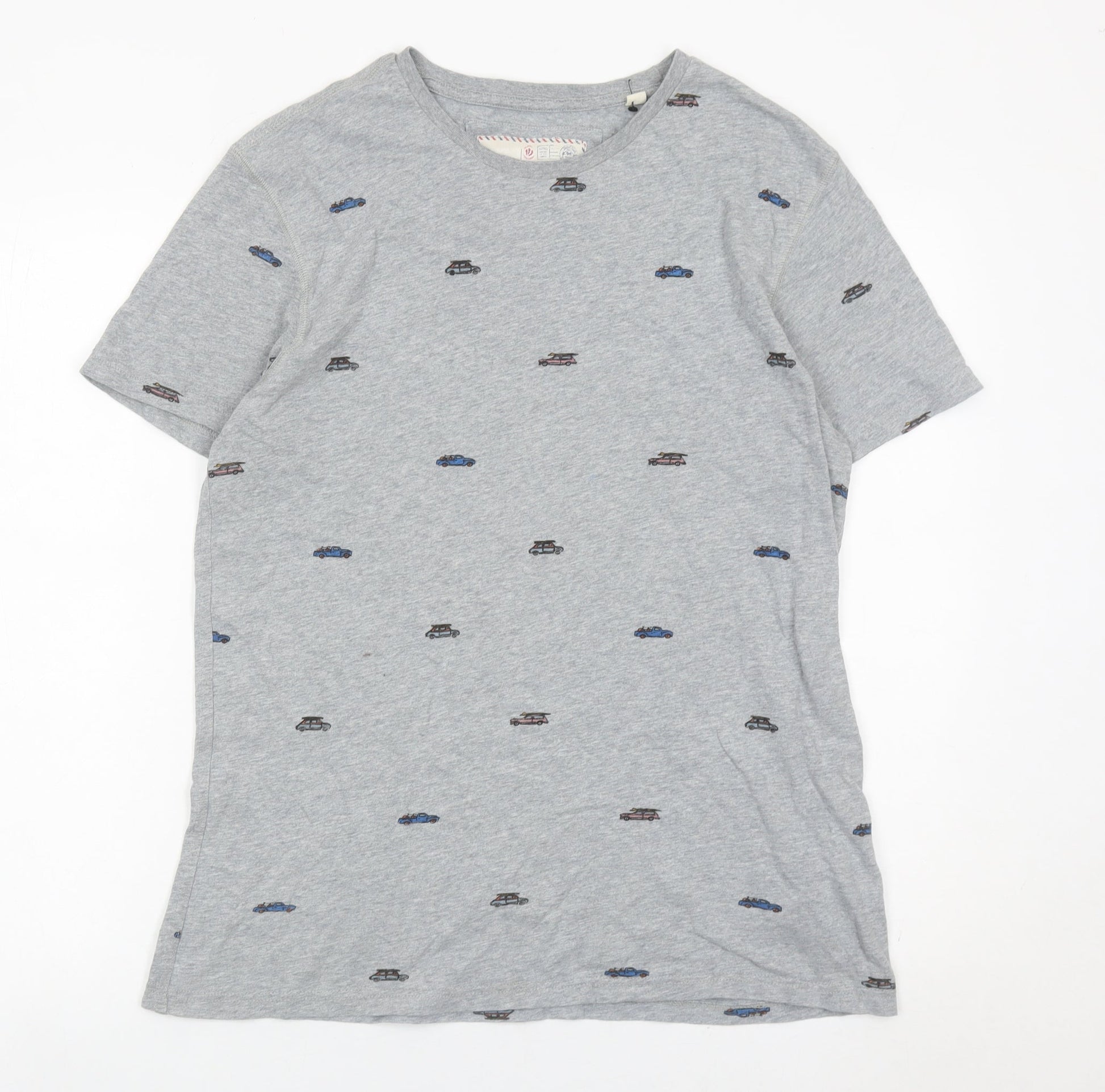FatFace Men’s Grey Car Print Crew Neck Cotton T-Shirt Size S