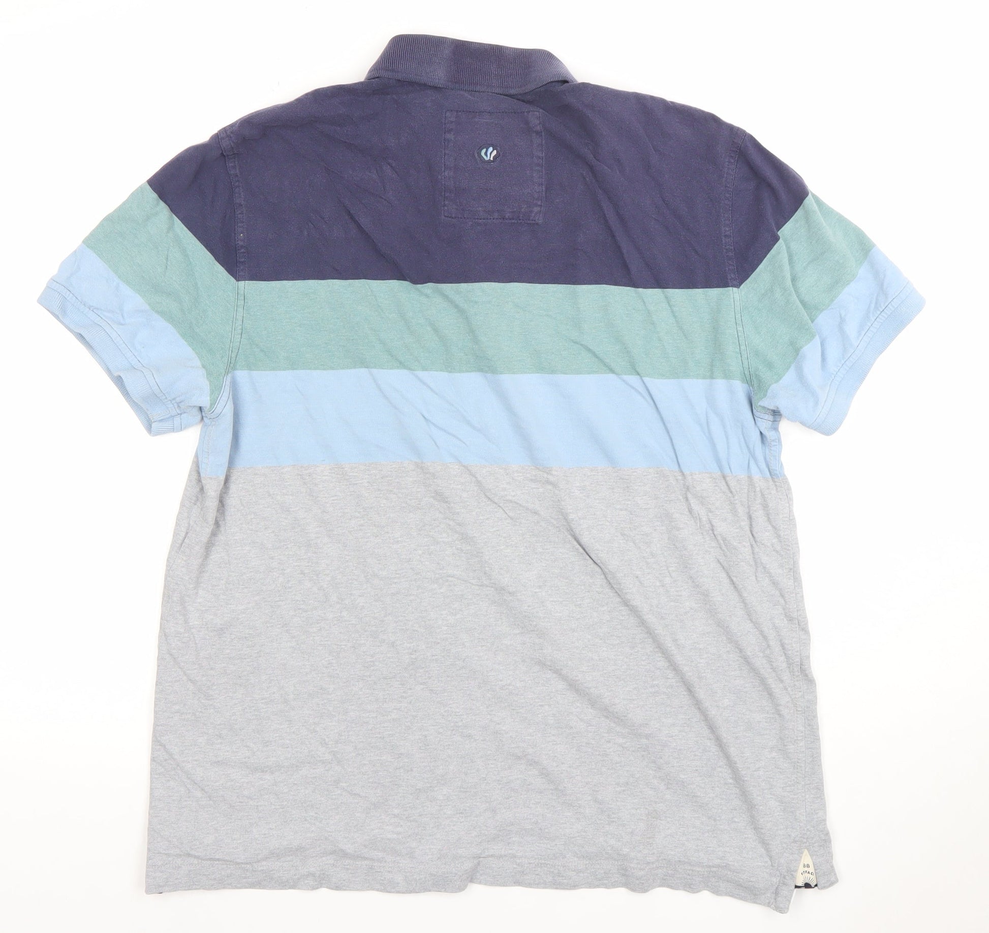 FatFace Men's Blue Multi Striped Cotton Polo Shirt XL Classic Fit