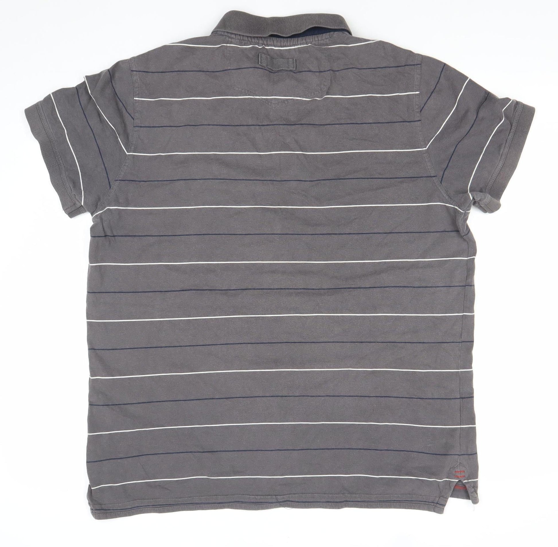 FatFace Men's Grey Striped Polo Shirt Size L Cotton Casual