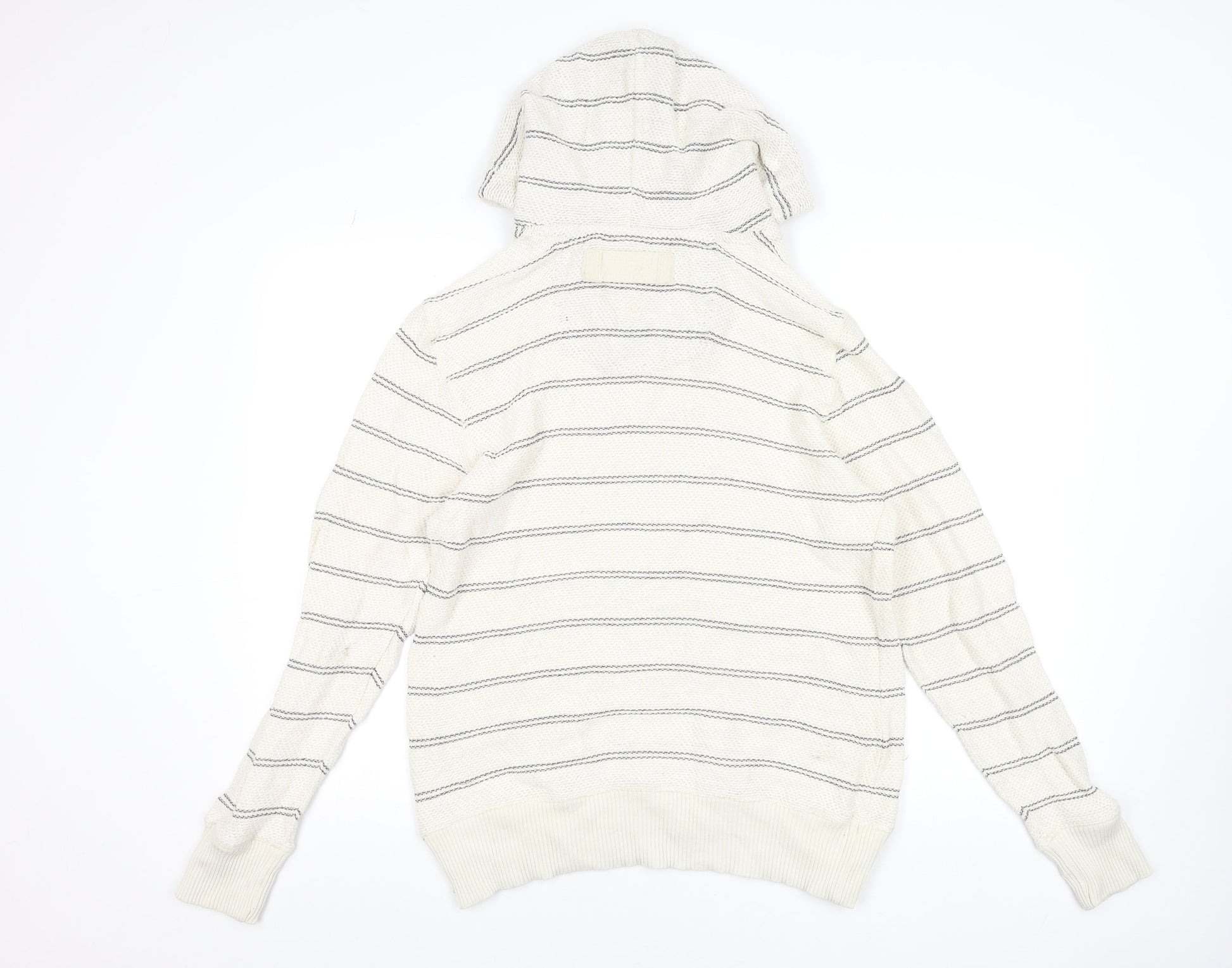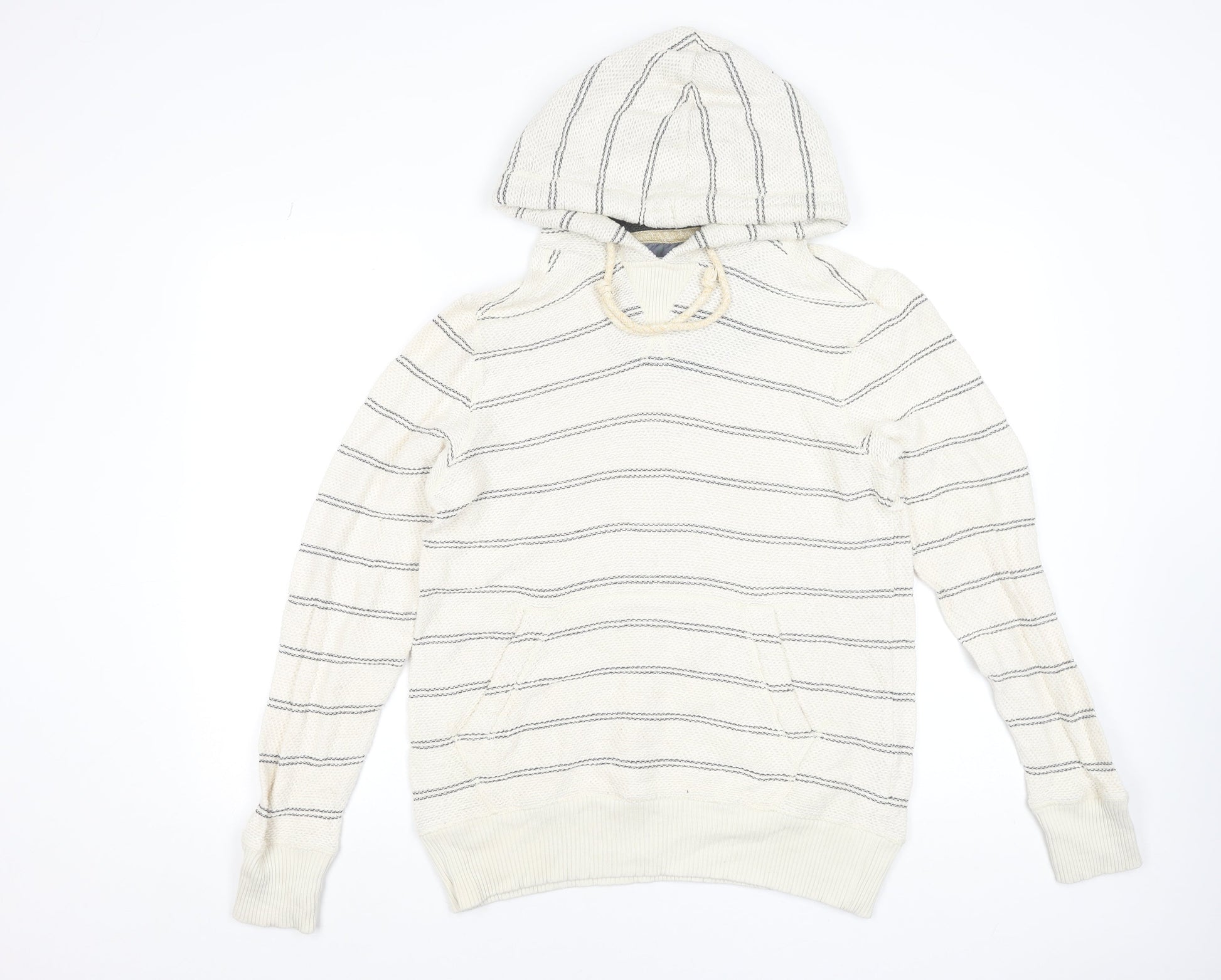 FatFace Men's Oatmeal Striped Cotton Hoodie Small Beige Pullover