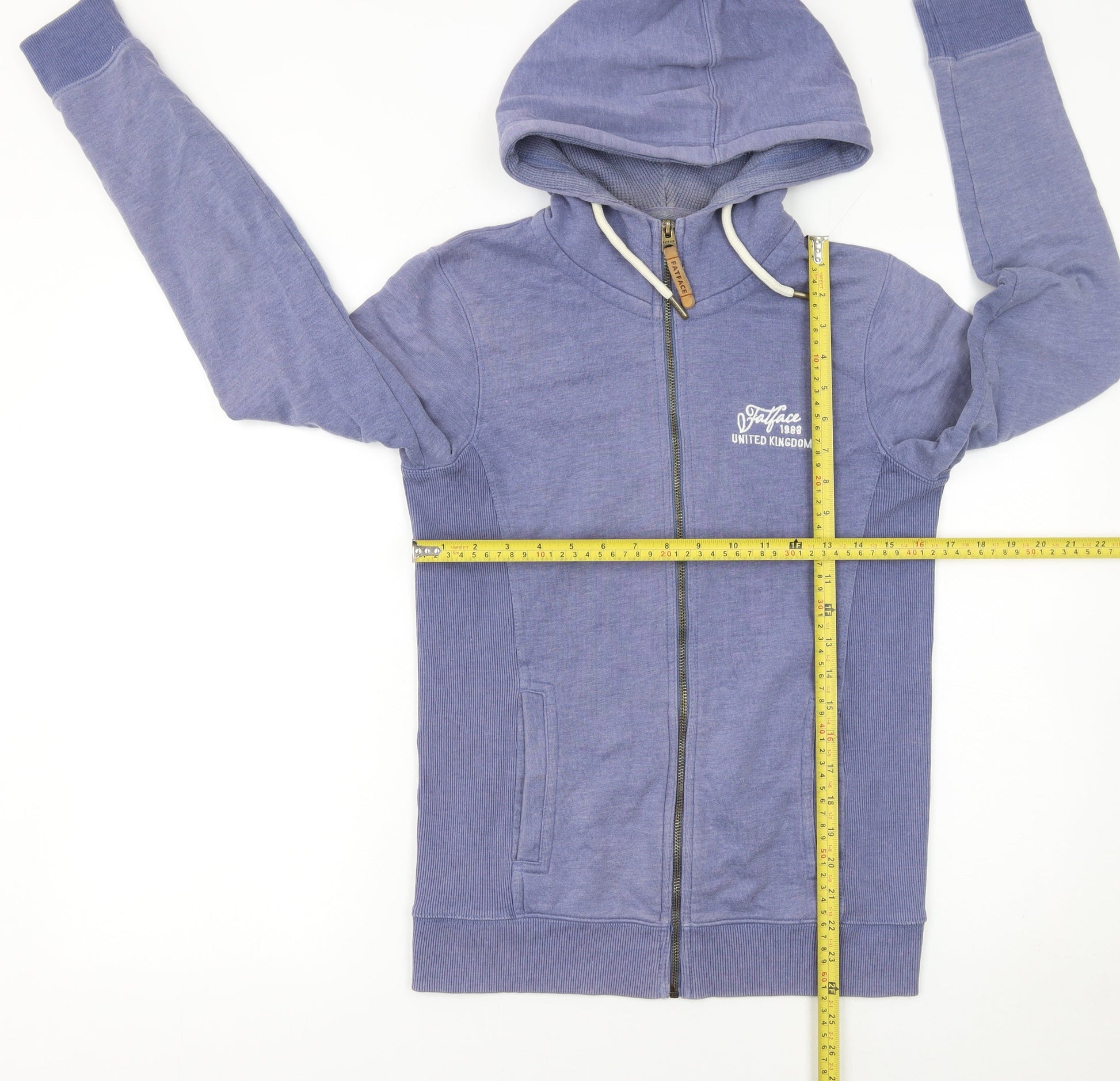 FatFace Women Blue Size 8 Full Zip Hoodie with Graphic Print
