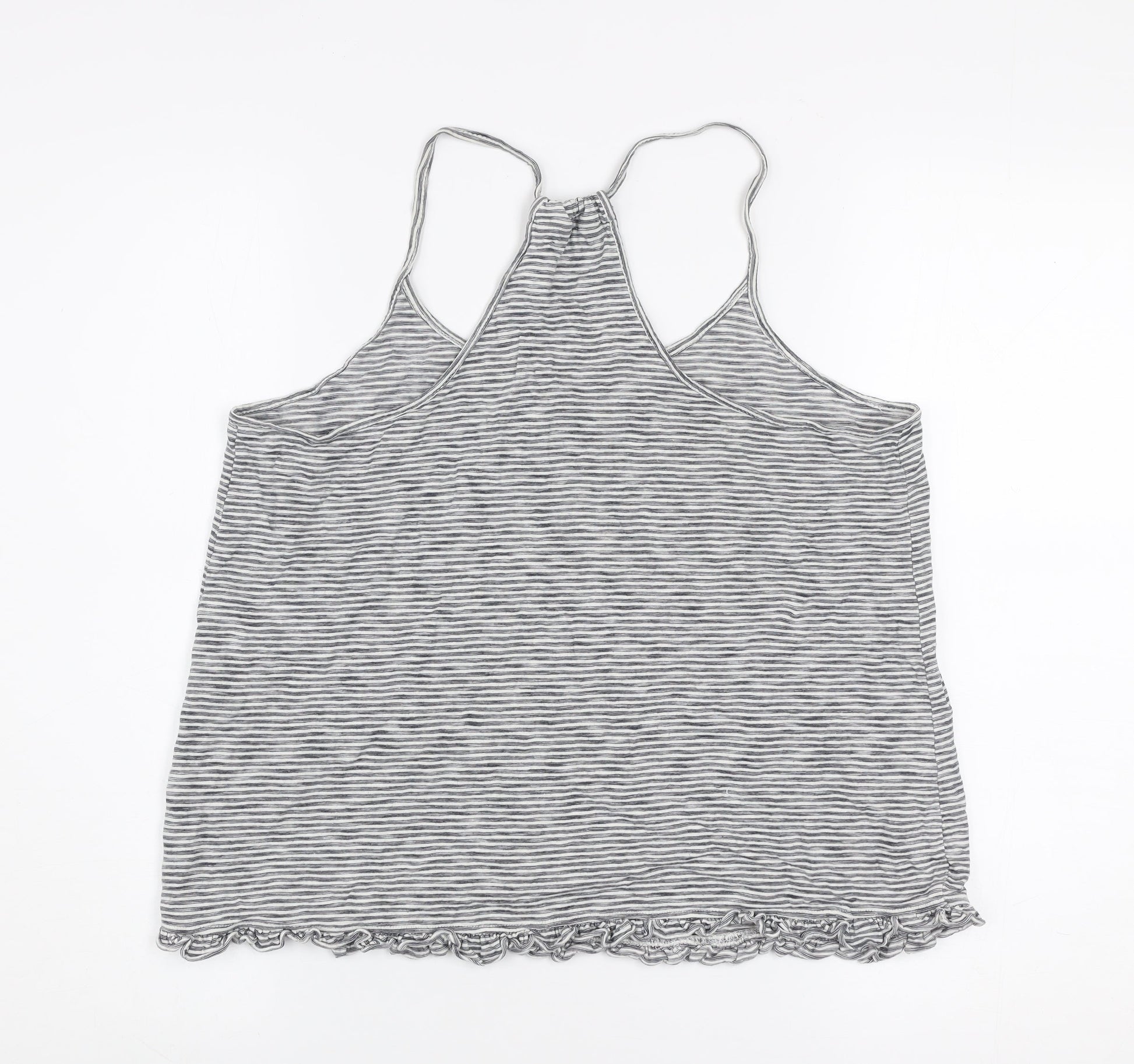 FatFace Women’s Grey Striped Cotton Spaghetti Strap Tank Top M