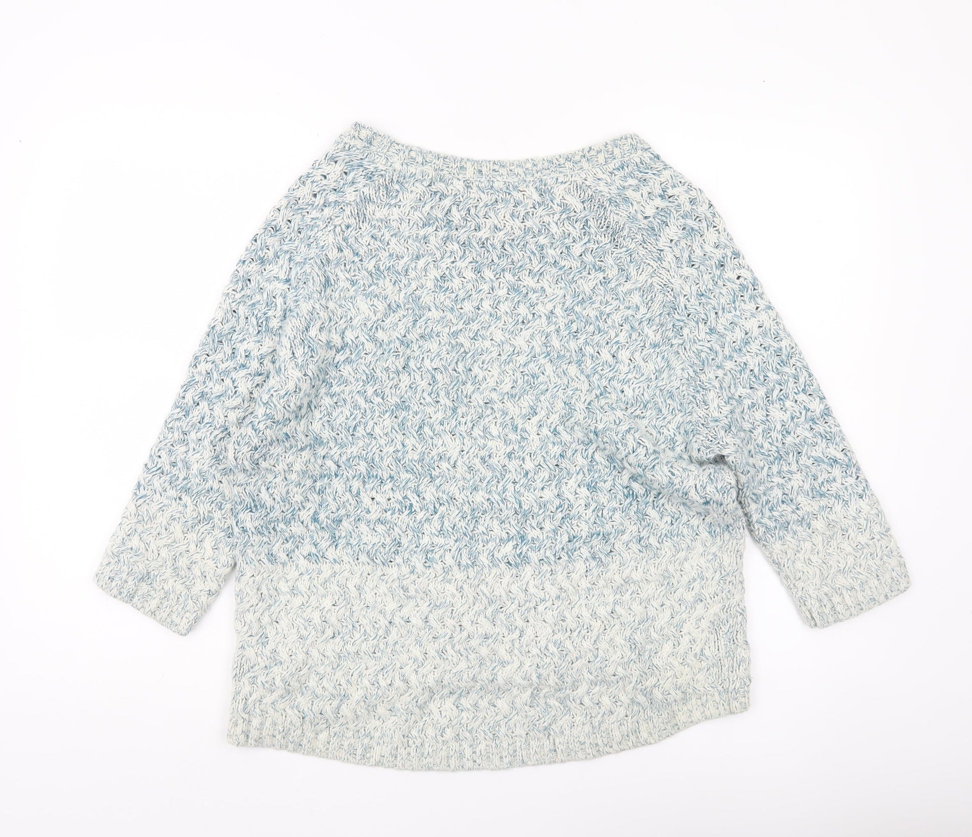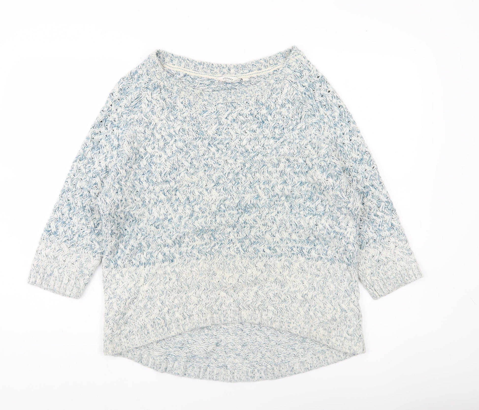 FatFace Women's Blue Knit Pullover Jumper M Linen Cotton 3/4 Sleeve