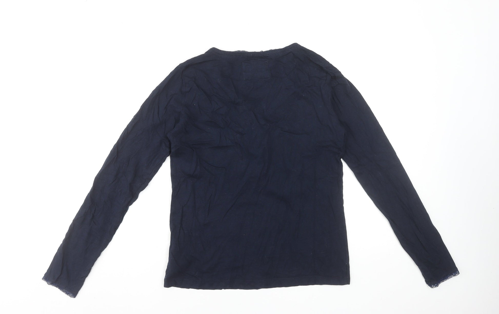 FatFace Women's Blue Long Sleeve Henley Jersey Top Size 10