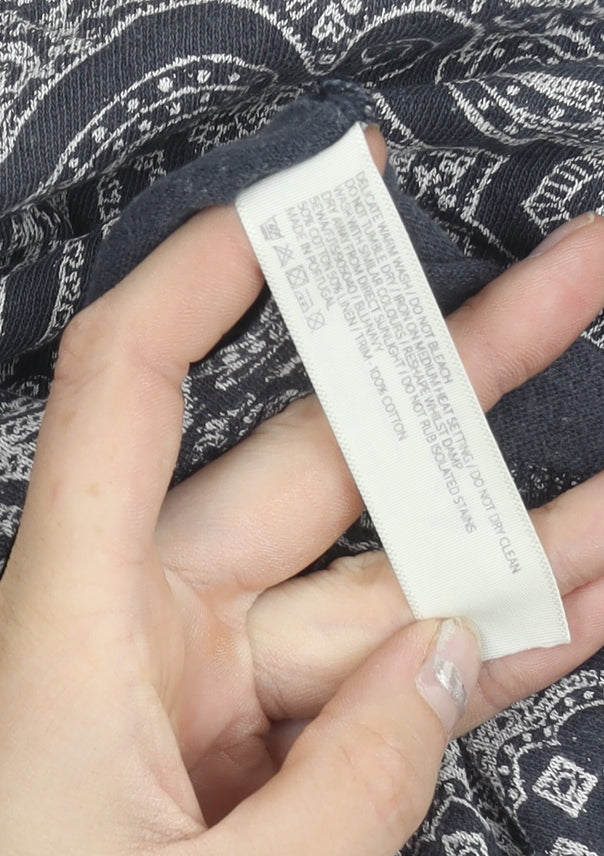 FatFace Womens Blue Paisley Cotton T-Shirt Size 14 Scoop Neck