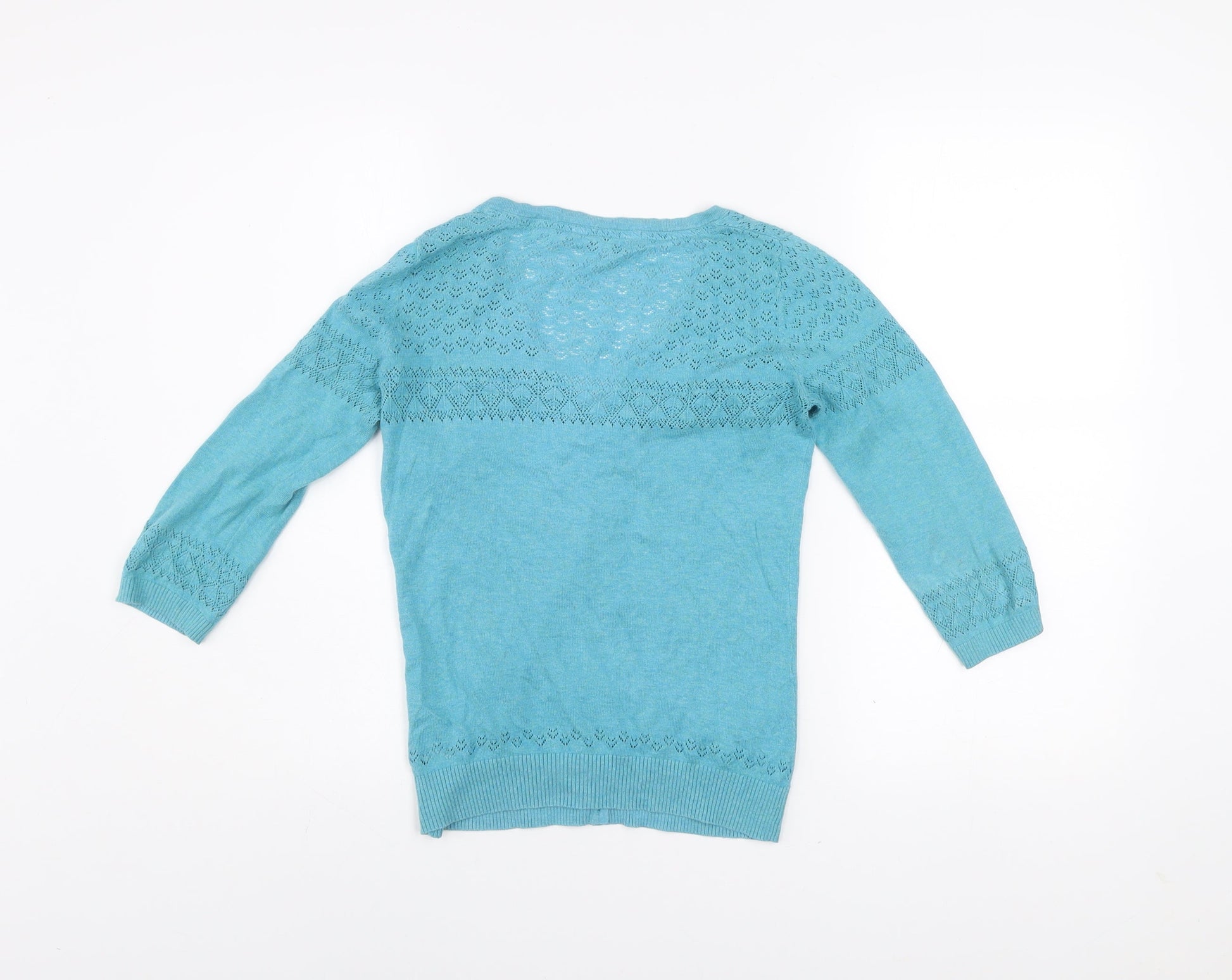FatFace Women's Blue Size 8 Cotton V-Neck 3/4 Sleeve Cardigan