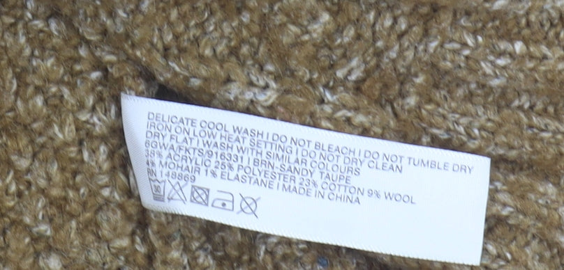 FatFace Women's Brown Roll Neck Cable Knit Jumper Size 8
