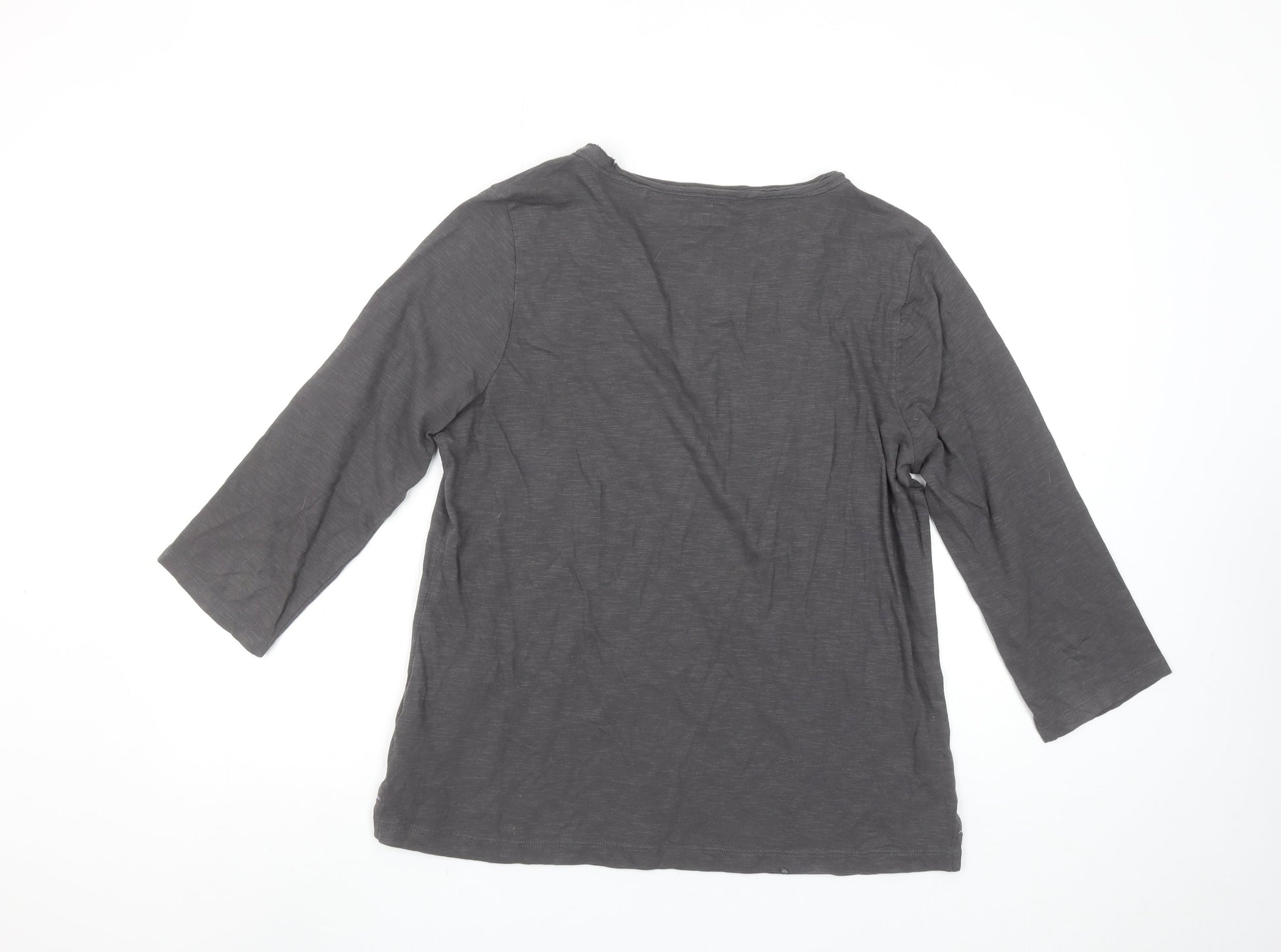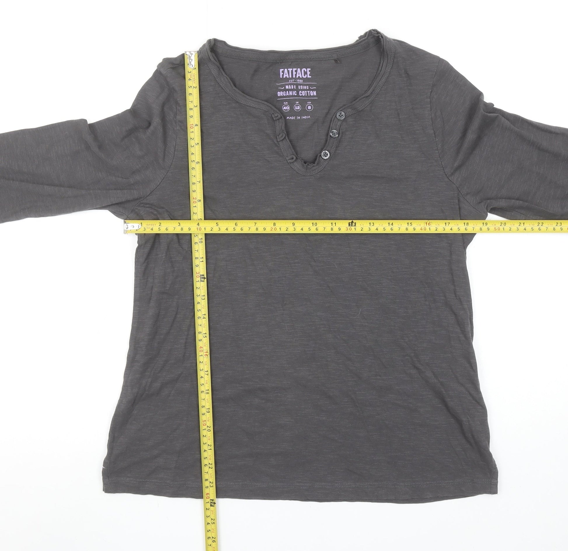 FatFace Women's Grey Organic Cotton Henley 3/4 Sleeve T-Shirt UK 12