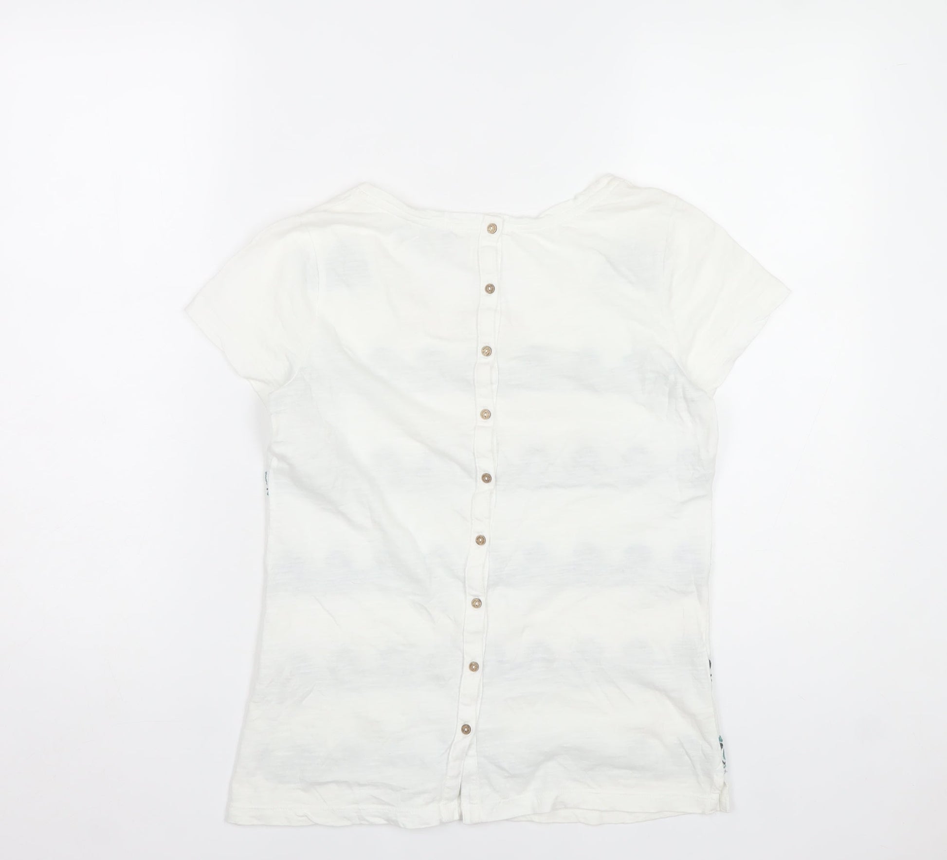 FatFace Women's White Embroidered Cotton T-Shirt Size 8