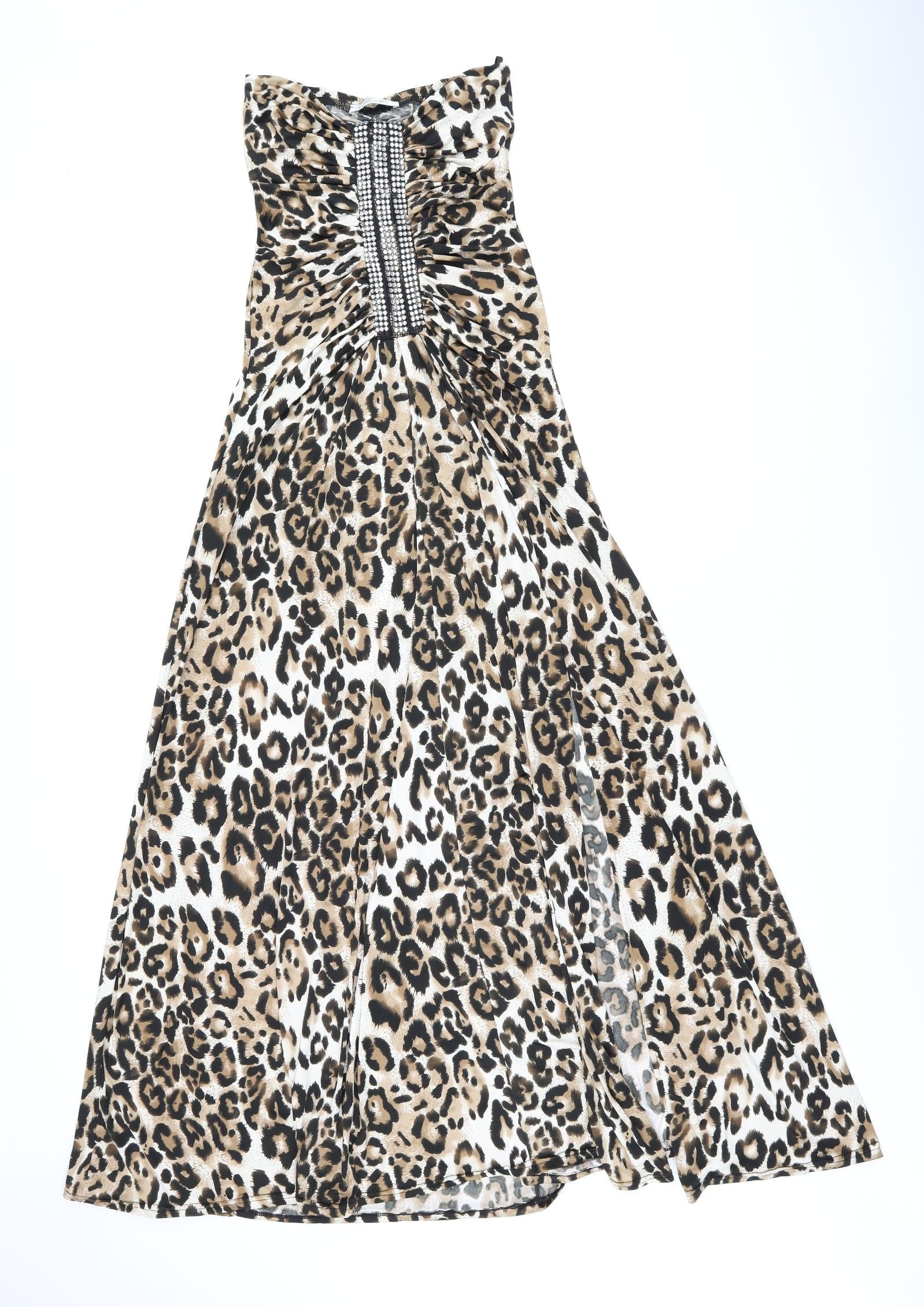 Faust Couture Womens Brown Animal Print Polyester Maxi Size S Off the Shoulder Pullover - Split Hem