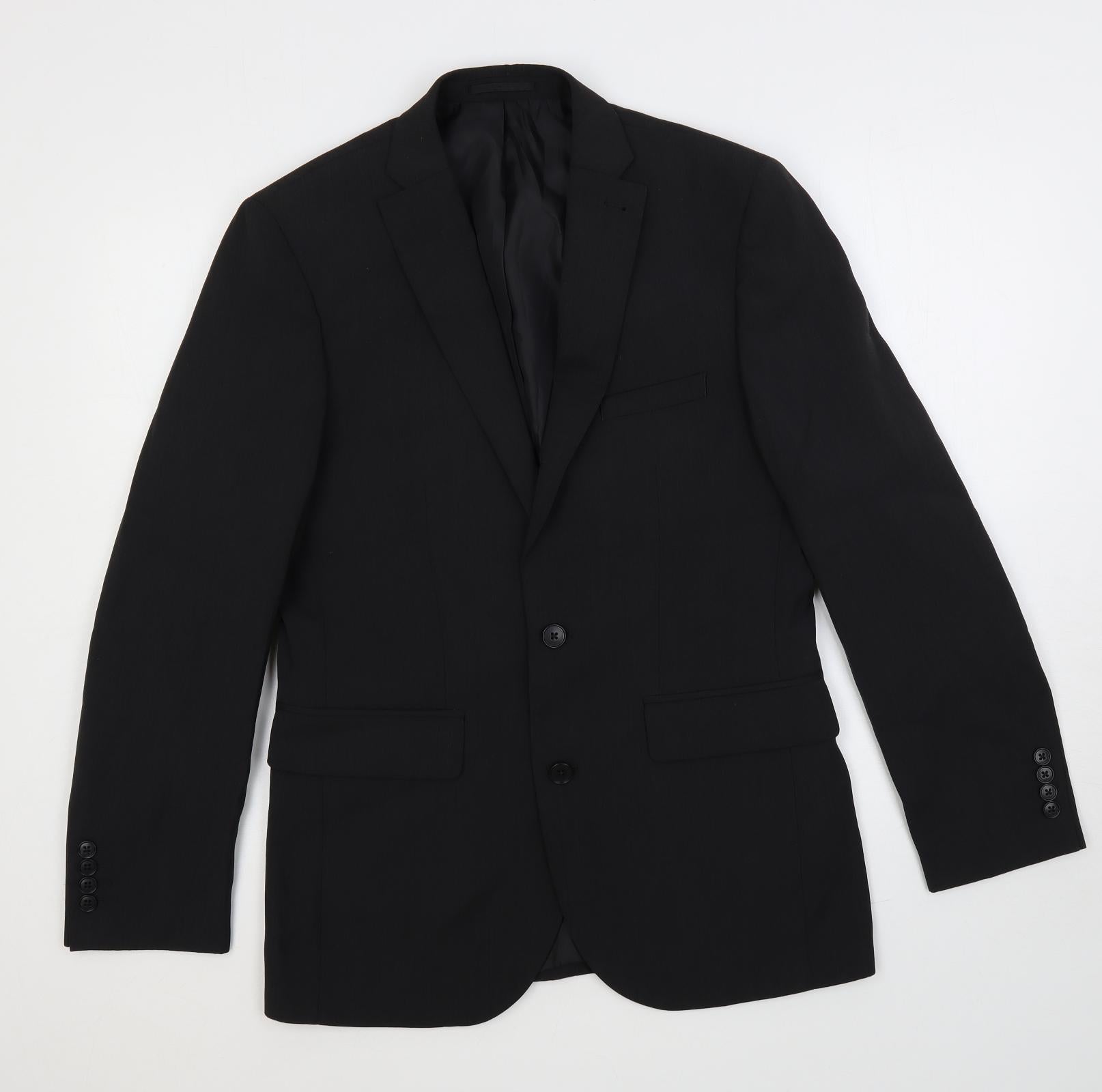 Fellini Mens Black Polyester Jacket Suit Jacket Size 36 Regular