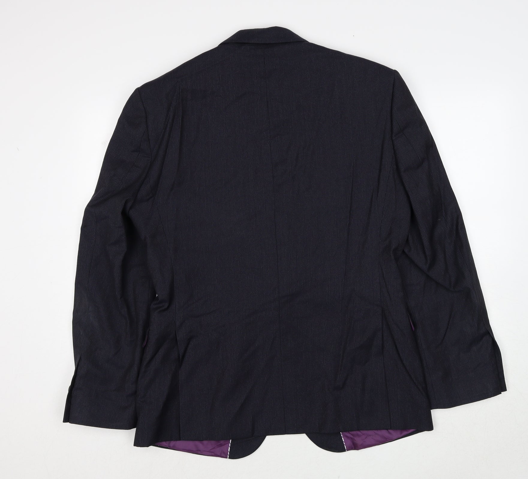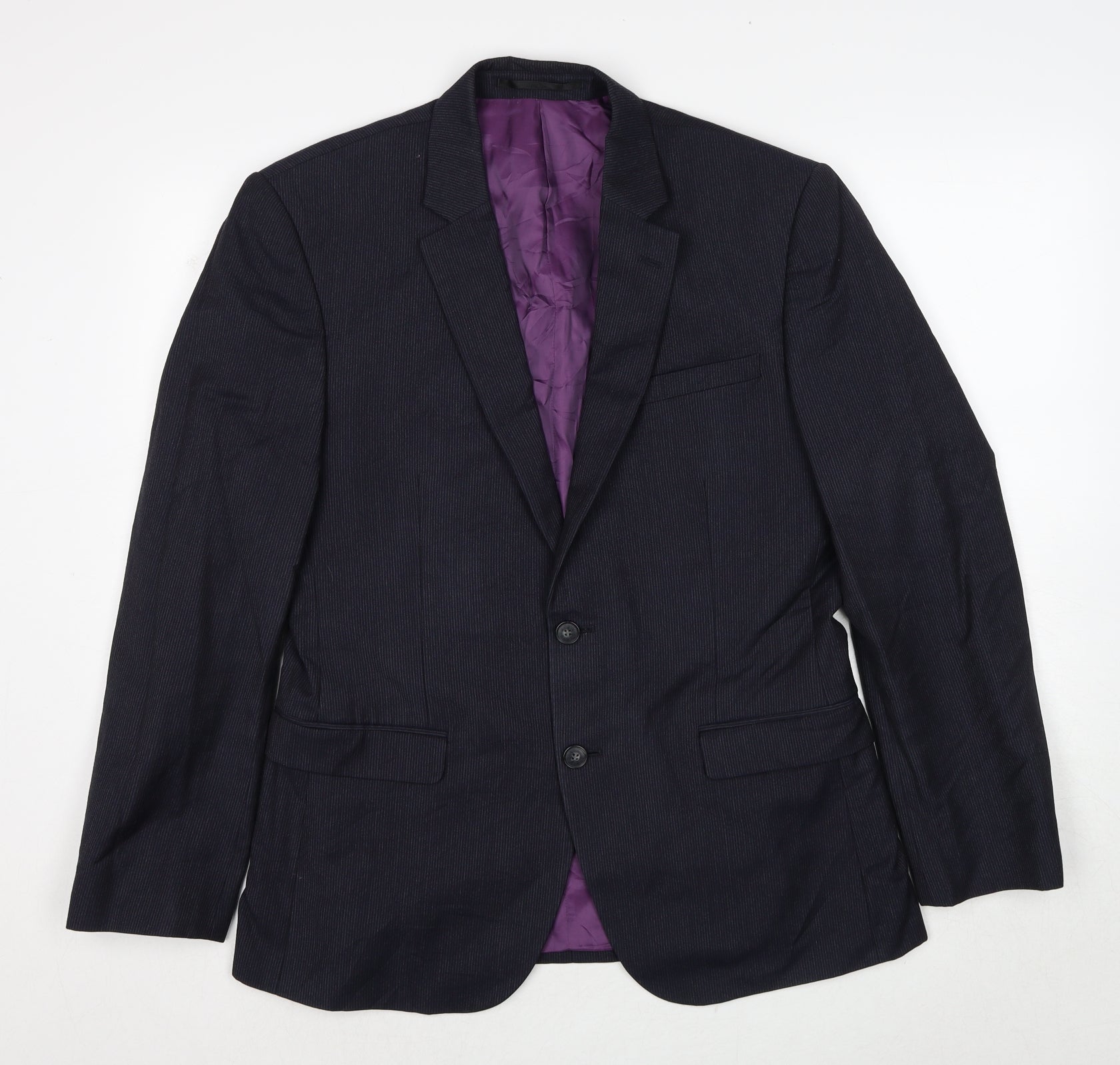 Fellini Mens Black Striped Polyester Jacket Suit Jacket Size 38 Regular