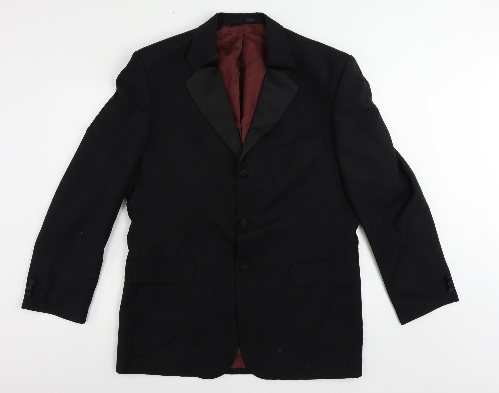 Fellini Mens Black Wool Tuxedo Suit Jacket Size 42 Regular