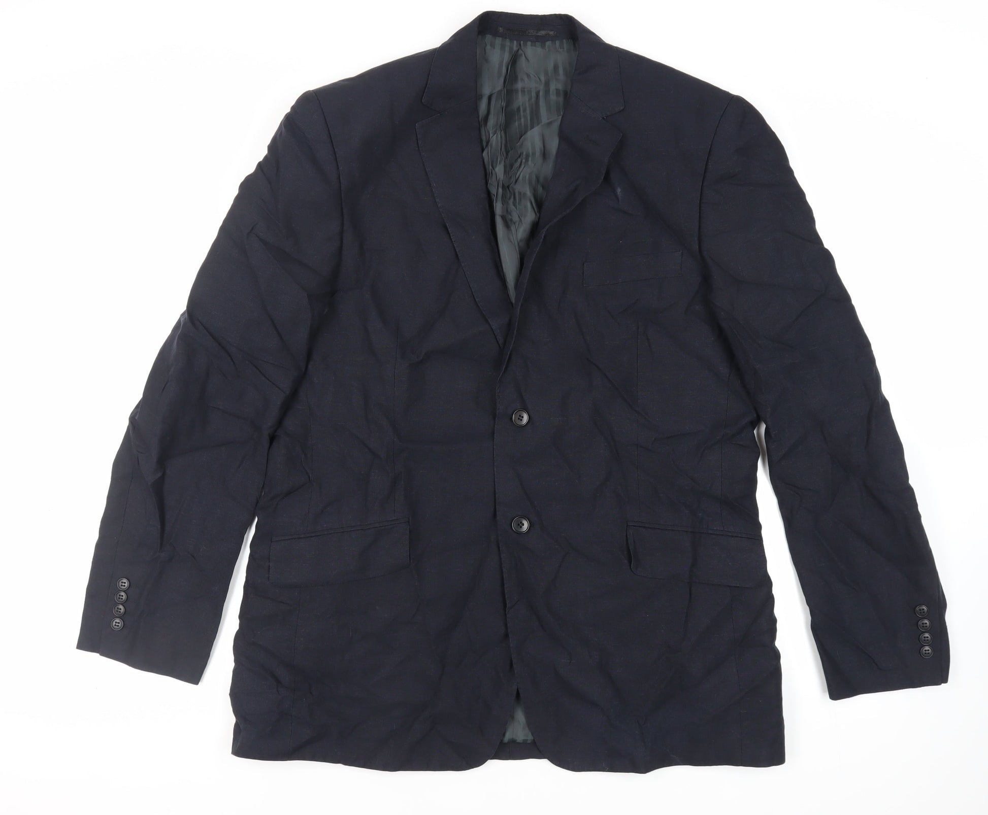 Fellini Mens Blue Linen Jacket Blazer Size 44 Regular