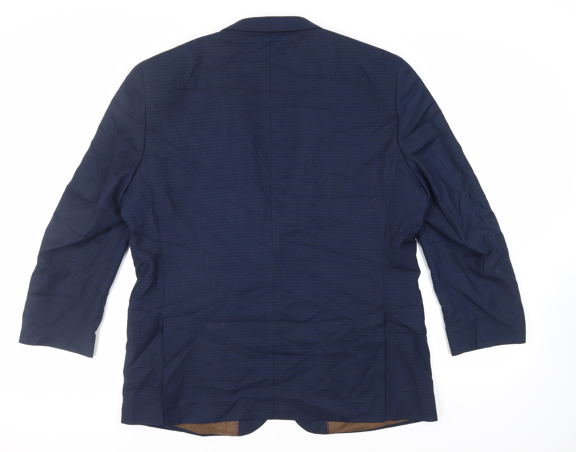 Fellini Mens Blue Plaid Polyester Jacket Suit Jacket Size 46 Regular