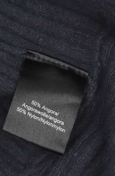 Fenn Wright Manson Women Black L Open Front Rib Knit Angora Cardigan