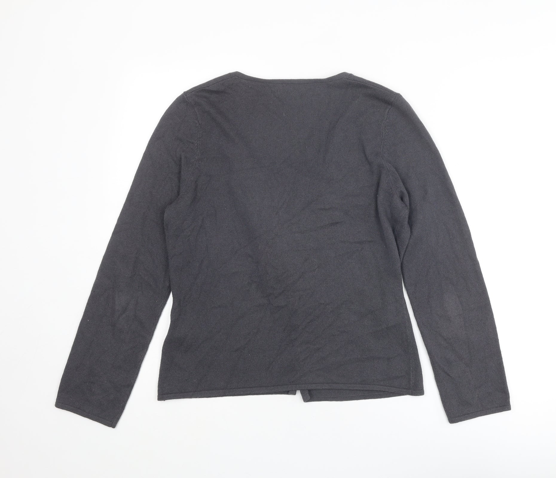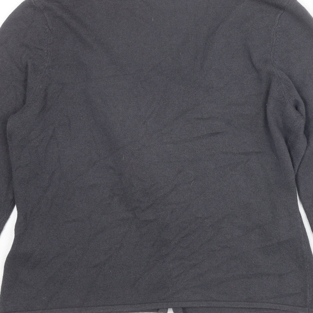 Fenn Wright Manson Womens Grey V-Neck Cotton Cardigan Jumper Size 12 - Flower Detail