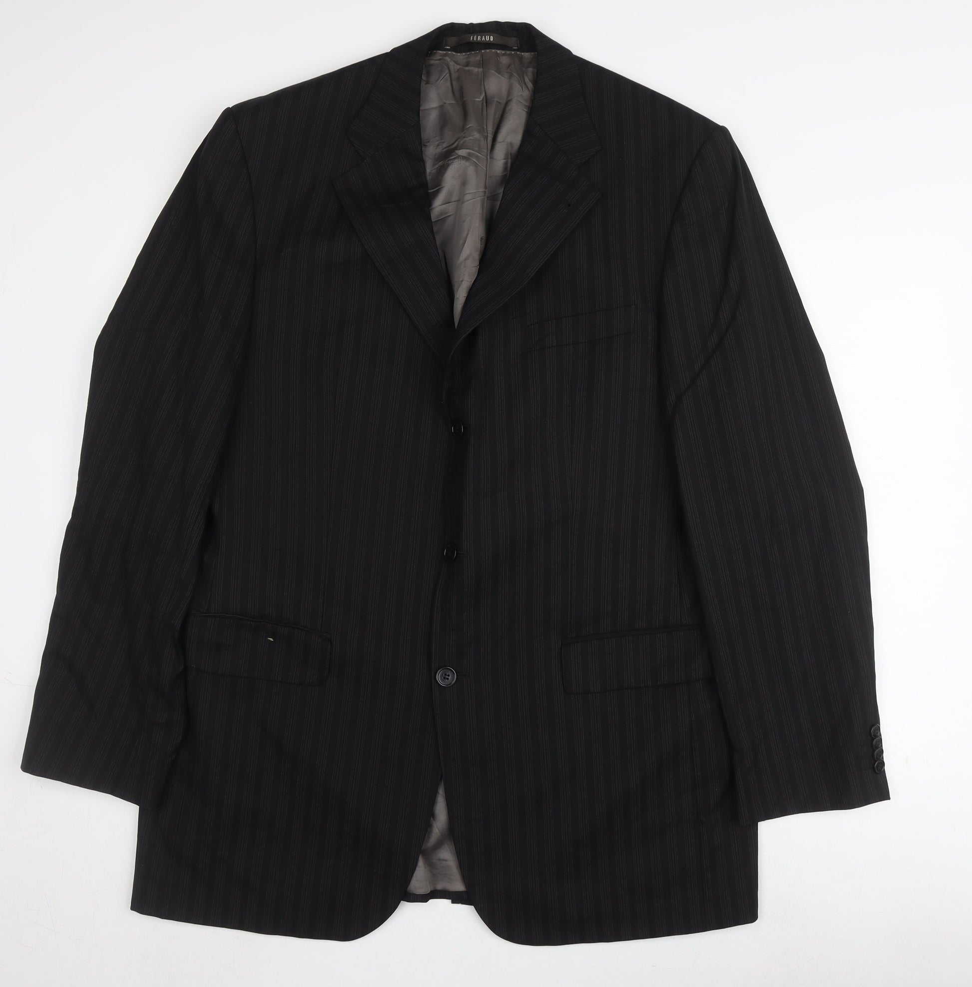 Féraud Men's Black Wool Striped Blazer Size 42