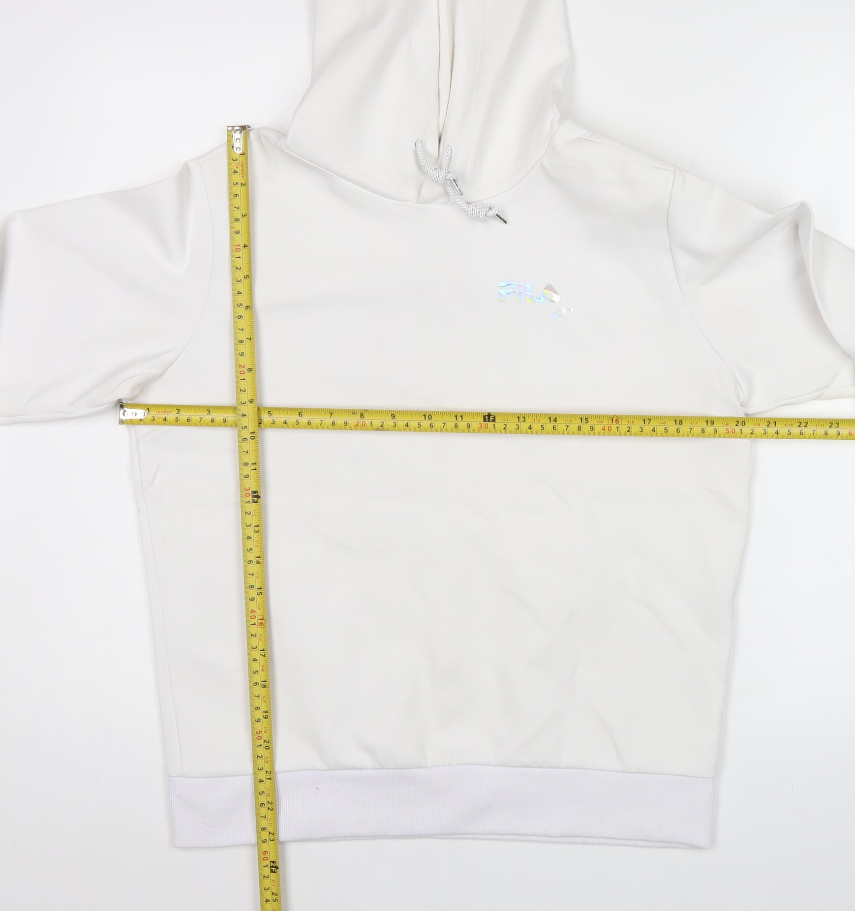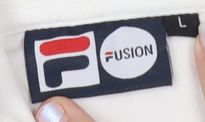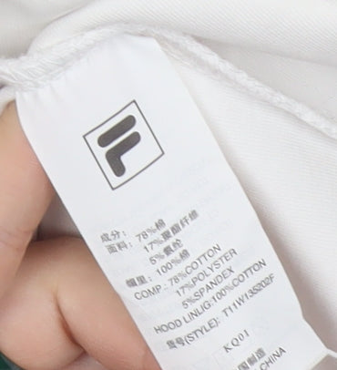 FILA Fusion Men's White Pullover Hoodie L Hooded Fleece Logo Detail