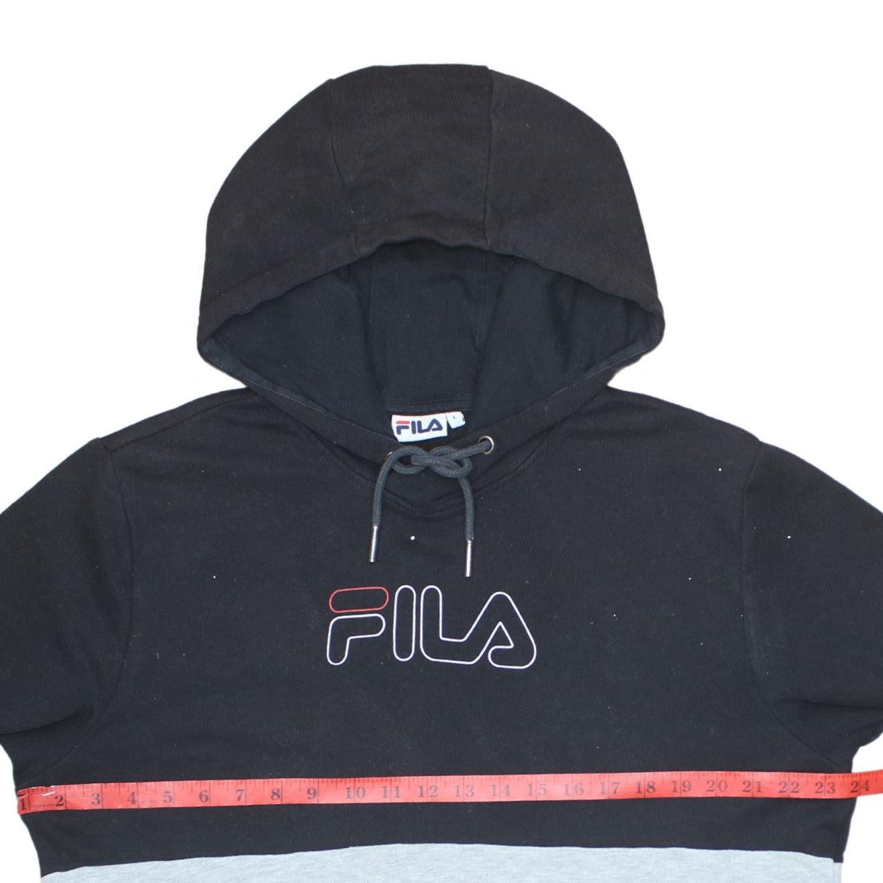 Fila Men’s Black Grey Pullover Hoodie L Logo Graphic Sweatshirt