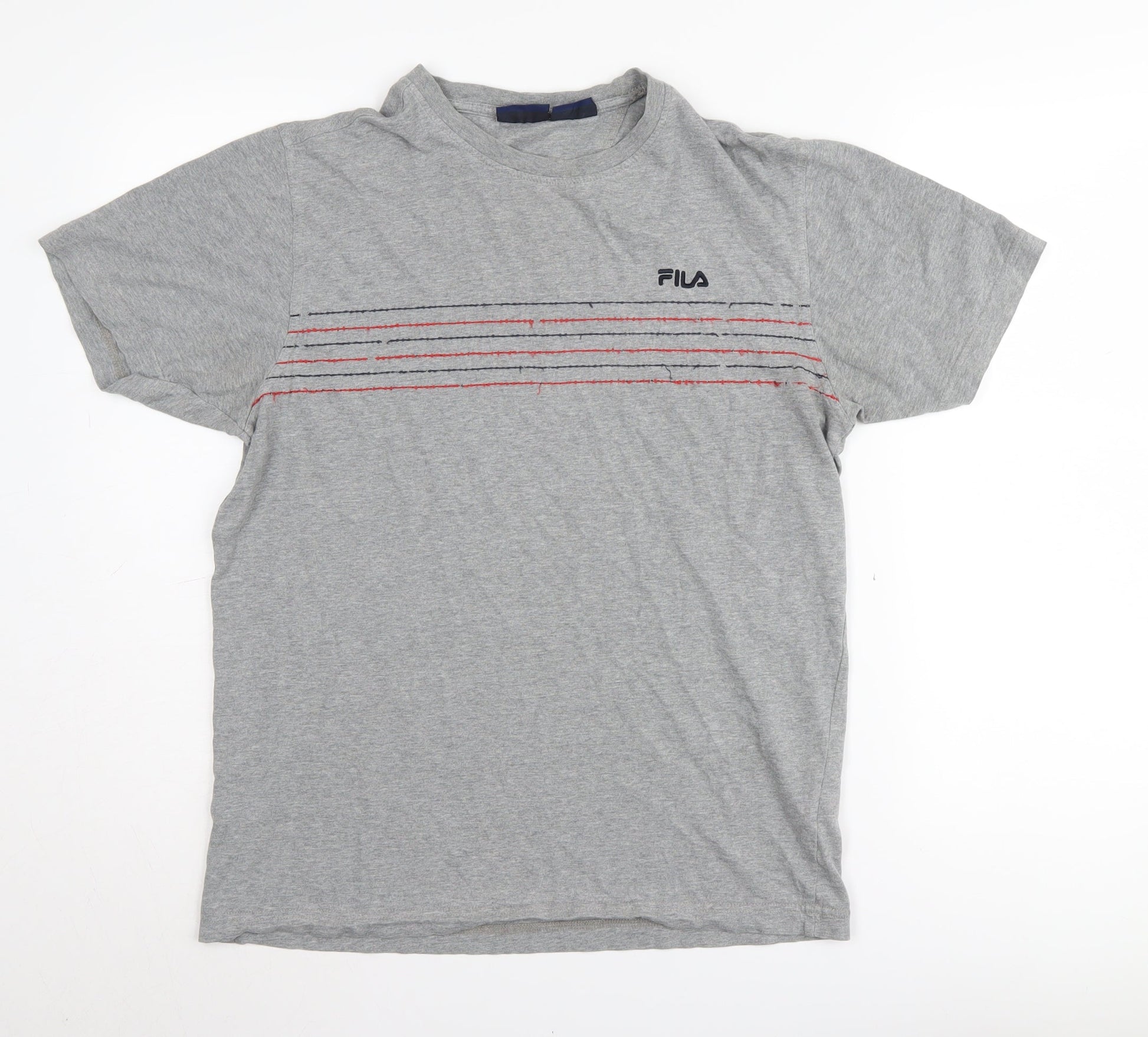 Fila Men's Grey Striped T-Shirt, Short Sleeve, Size S