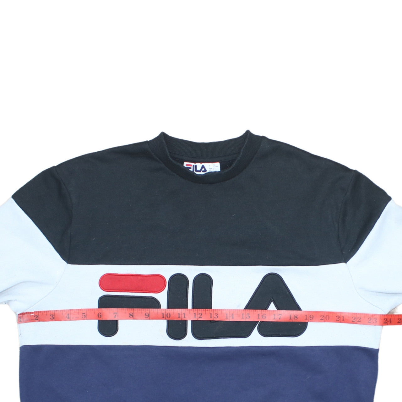 FILA Mens L Sweatshirt Blue Black White Colourblock Logo Crew Neck
