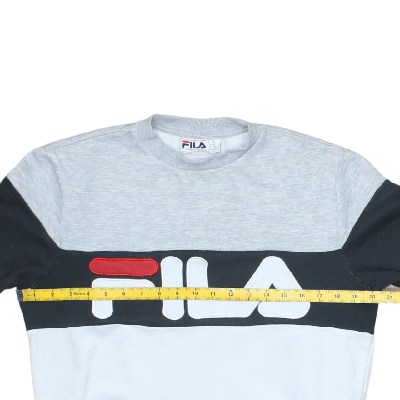 FILA Mens XS Grey White Black Pullover Sweatshirt Logo Crew Neck