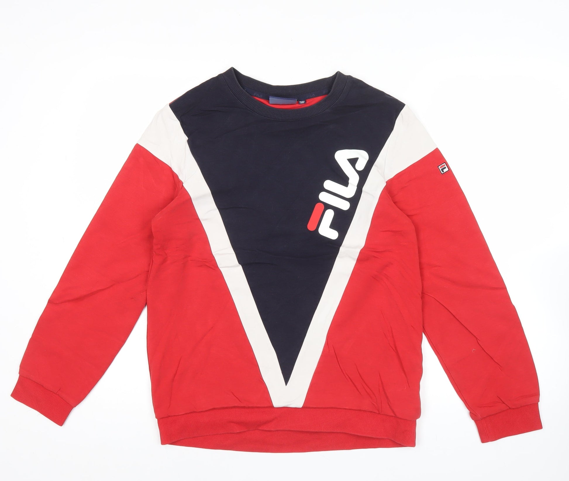 FILA Teens Red Blue White XS Logo Pullover Sweatshirt