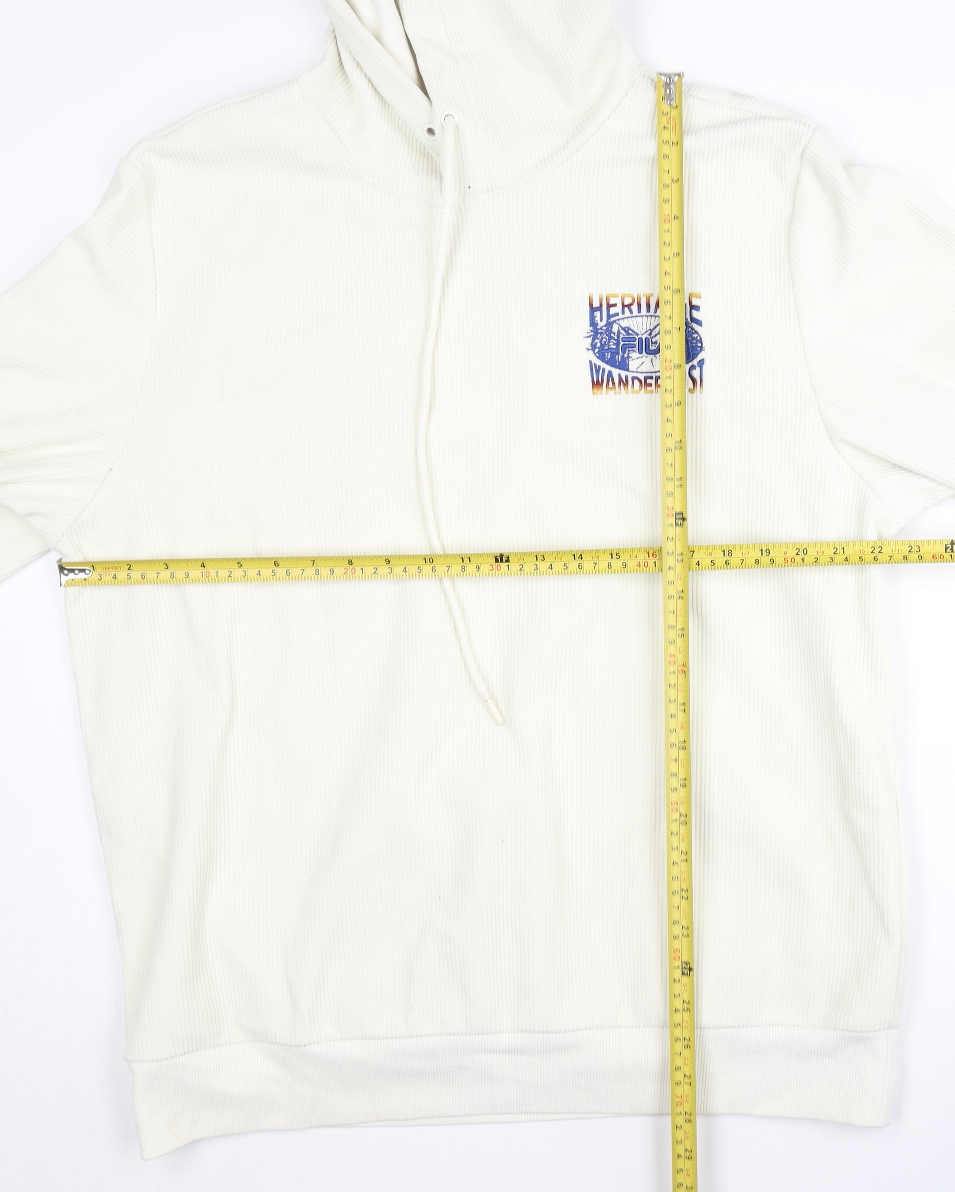 Fila White Line Men's White Corduroy Pullover Hoodie L Regular Fit