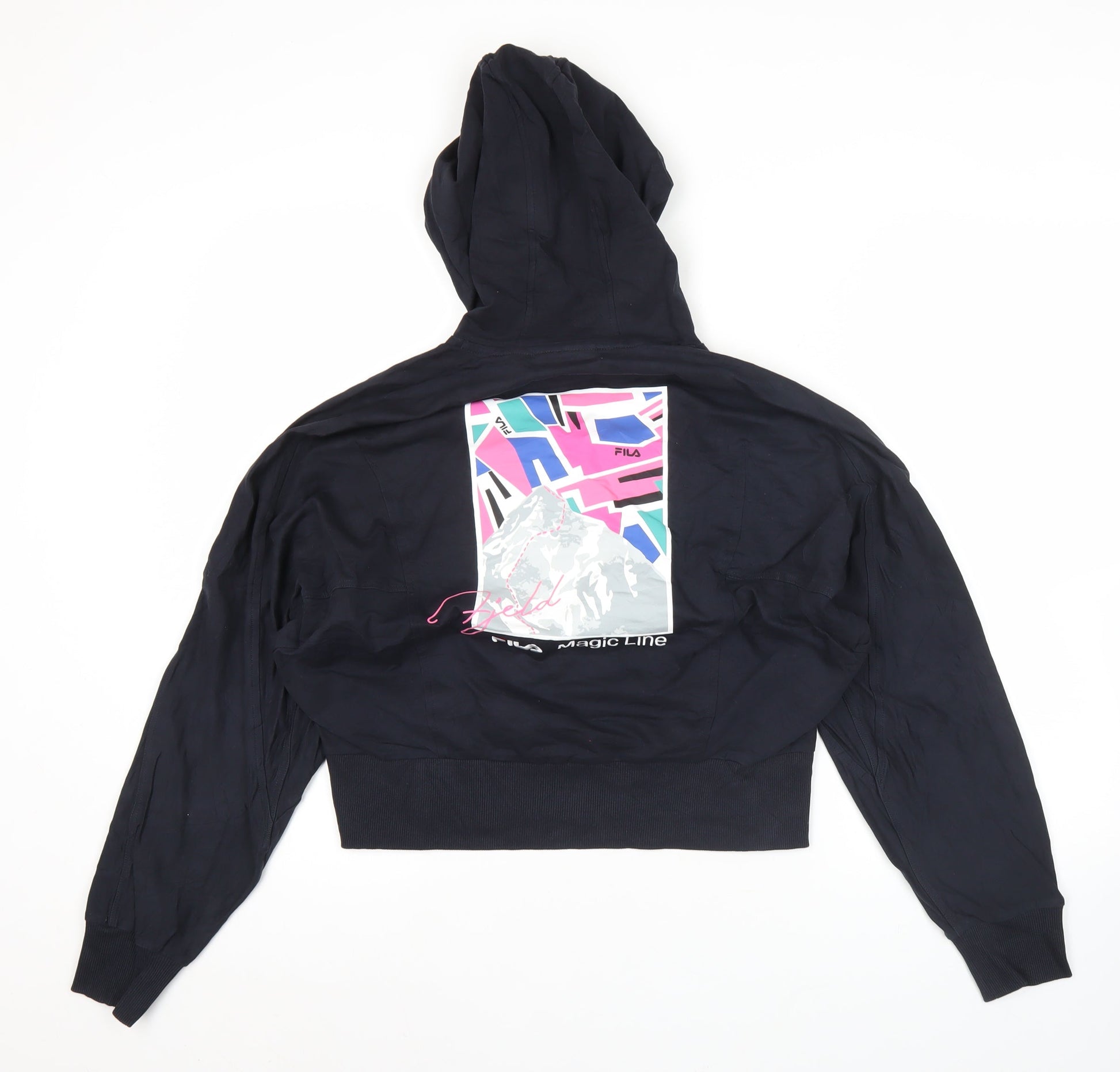 Fila Women’s Black Pullover Hoodie Size 8 Graphic Logo Hooded Sweatshirt