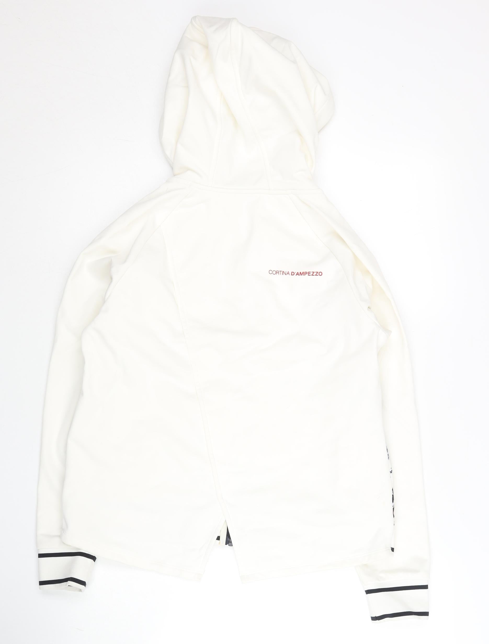 Fila Women’s White Track Jacket Size 8 Geometric Hooded Full Zip