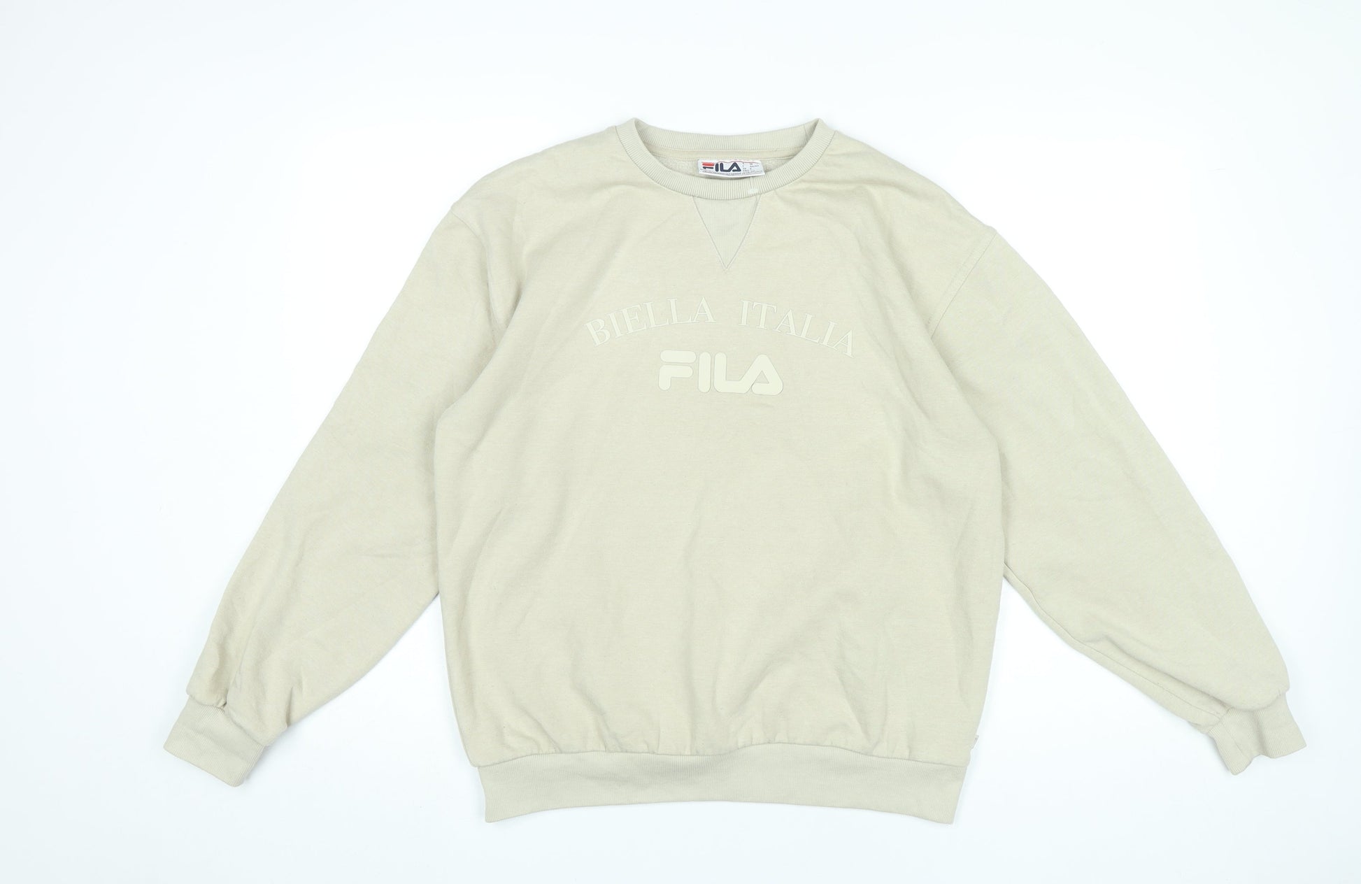 FILA Womens Beige Pullover Sweatshirt Size S Logo Crew Neck Casual